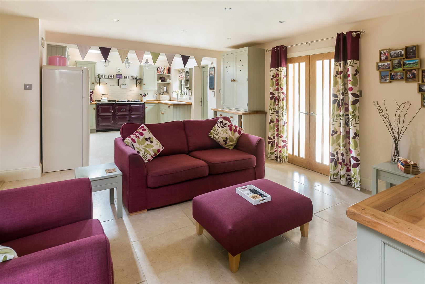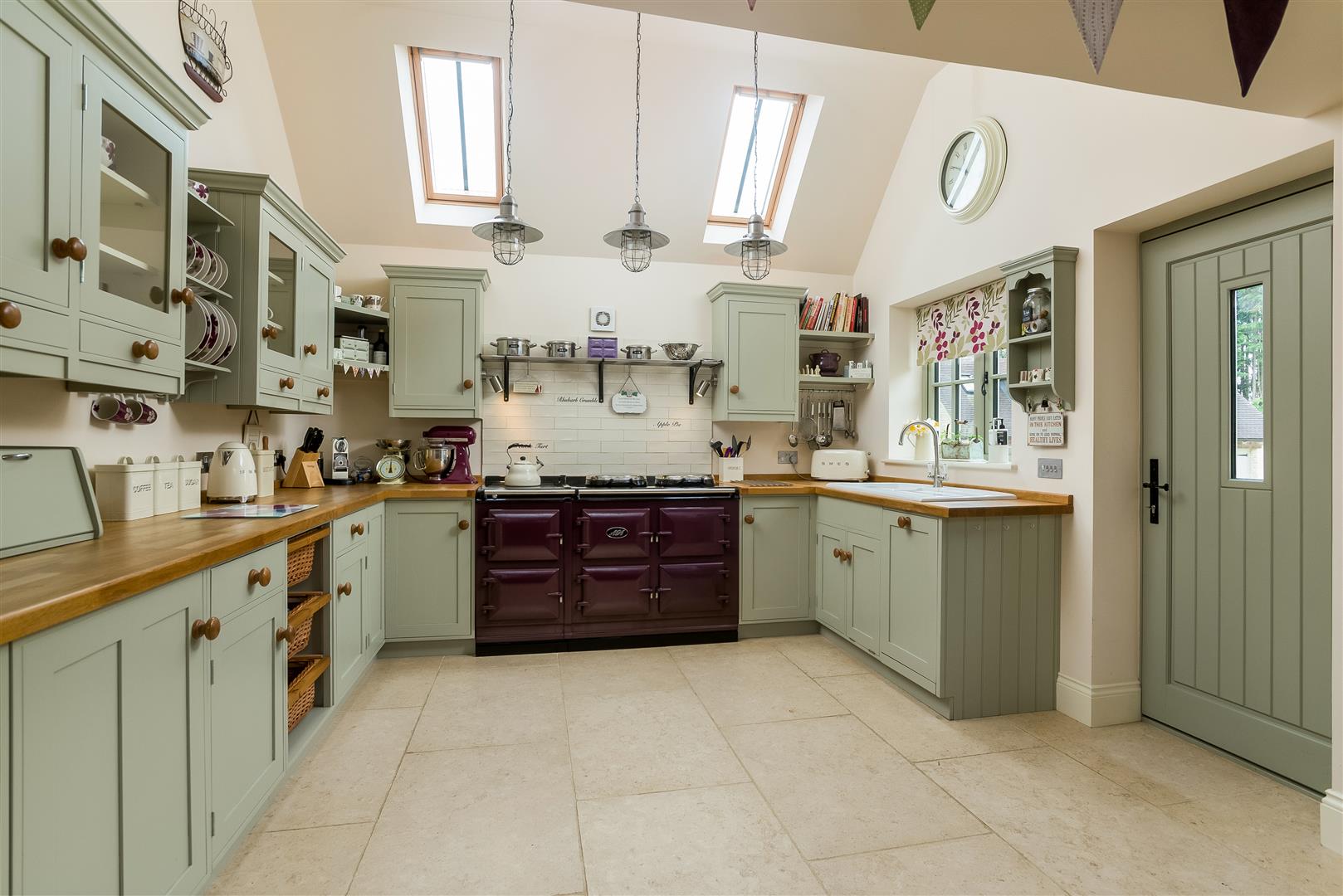 Fitted with a range of wall and base units complimented with wooden work surfaces, lime flagstones with underfloor heating and integrated appliances including dishwasher and freezer, attractive five oven electric Aga whilst still providing plenty of space for a large table and chairs it is perfect for entertaining and casual dining with family and friends.