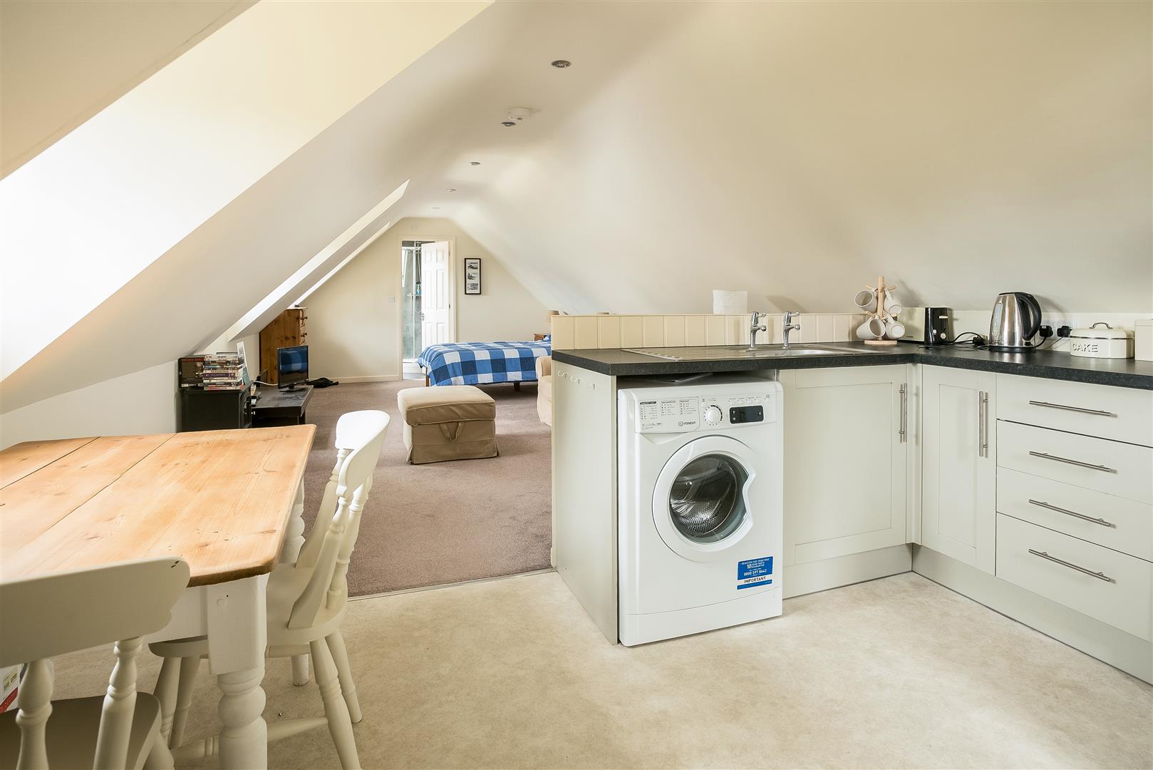 An annexe above the garage is accessed via stairs from outside leading to the first floor. With an open plan kitchen/living area and plenty of room for storage and a double bed, it is the ideal space for occasional guests or those that want independence from the main house.