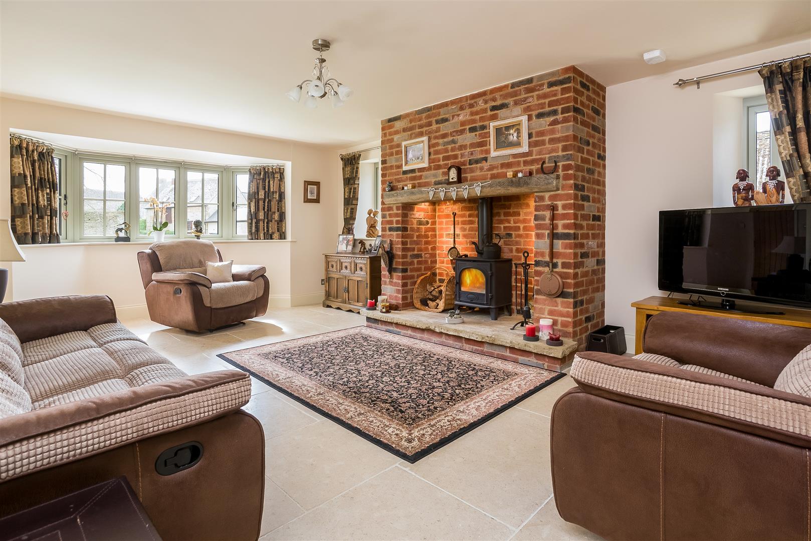 The entrance hall with a balustraded staircase that leads to the first floor also provides access to the sitting room, which boasts an attractive brick inglenook fireplace and wood-burning stove making for the perfect room for both family gatherings and cosy evenings alike.