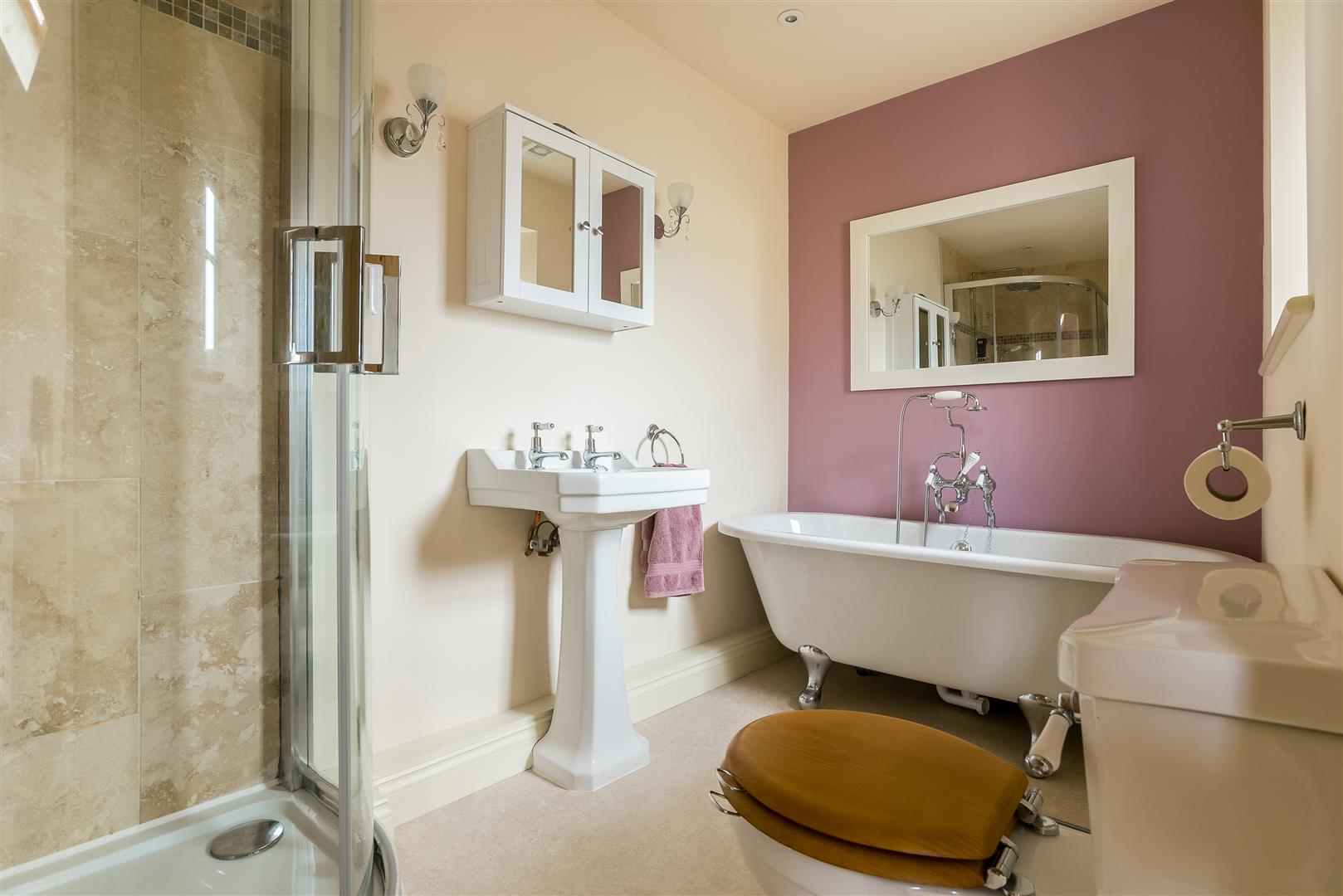 The en-suite bathroom has both a roll-top bath and a double shower.