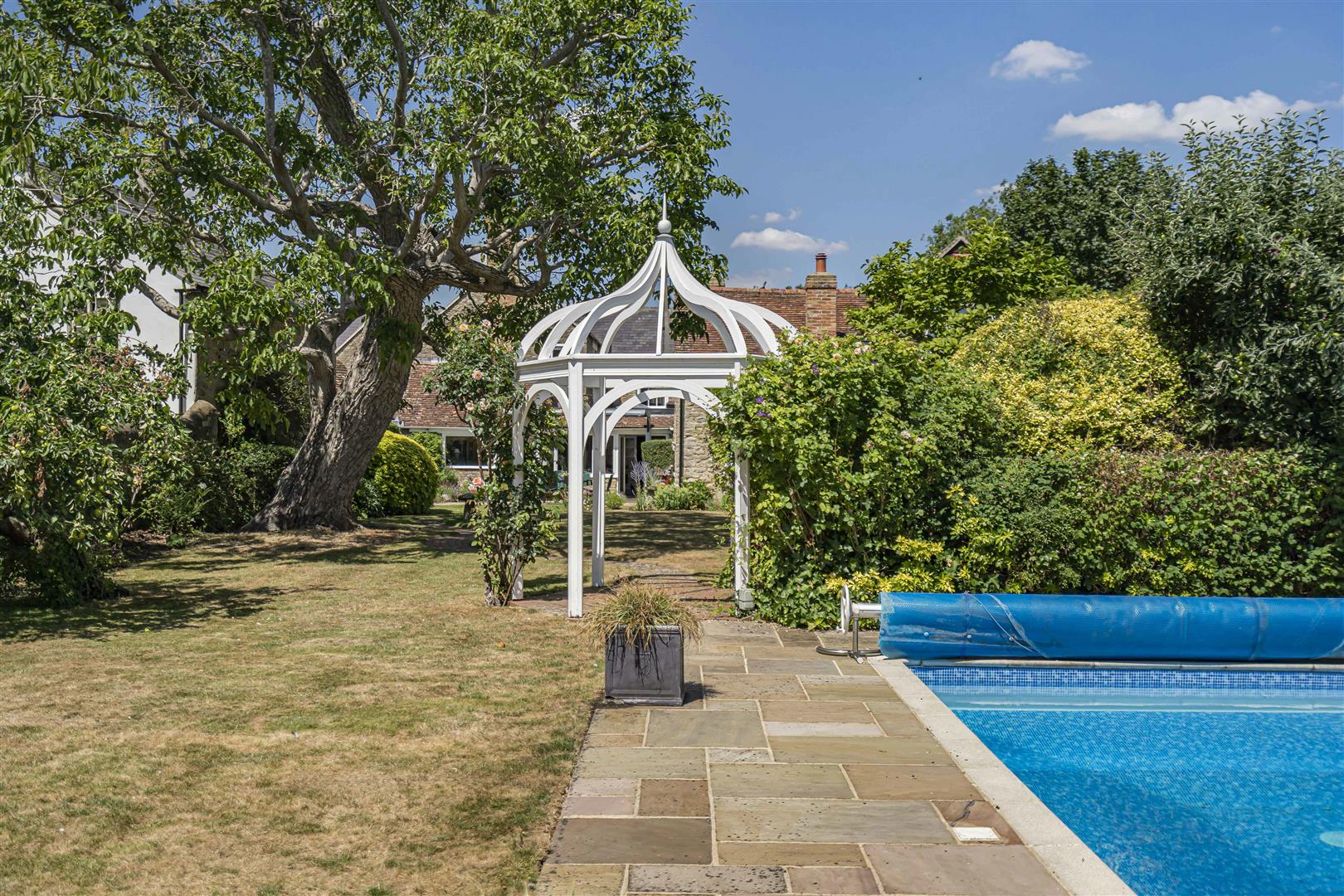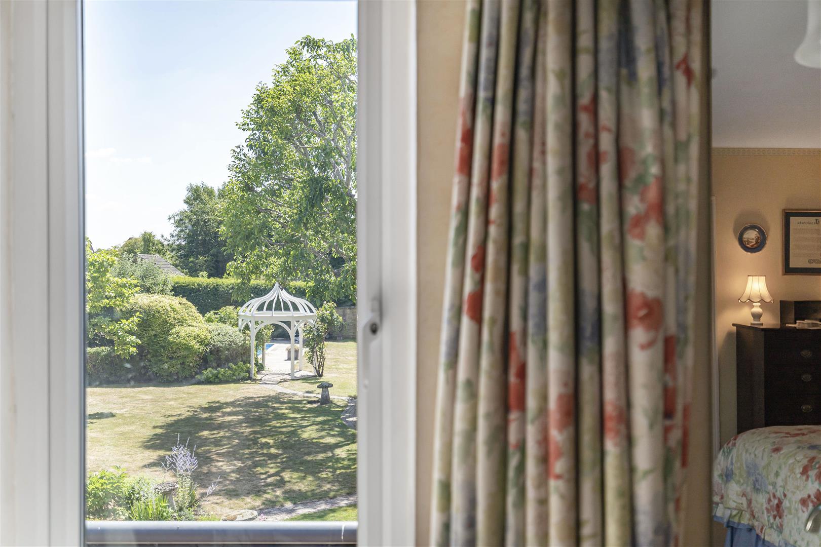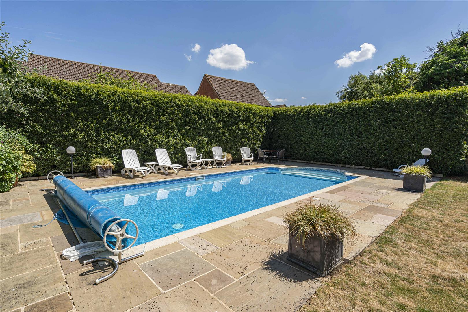 Outside the generous grounds are beautifully landscaped, with mature trees, colourful shrubs, large areas of lawn, a patio for al-fresco dining and an attractive pathway leading to an outdoor pool, which provides a true retreat for both relaxation and entertaining.
