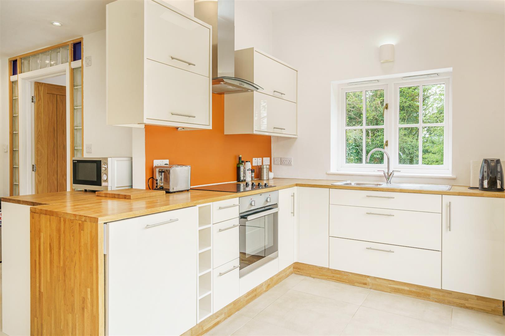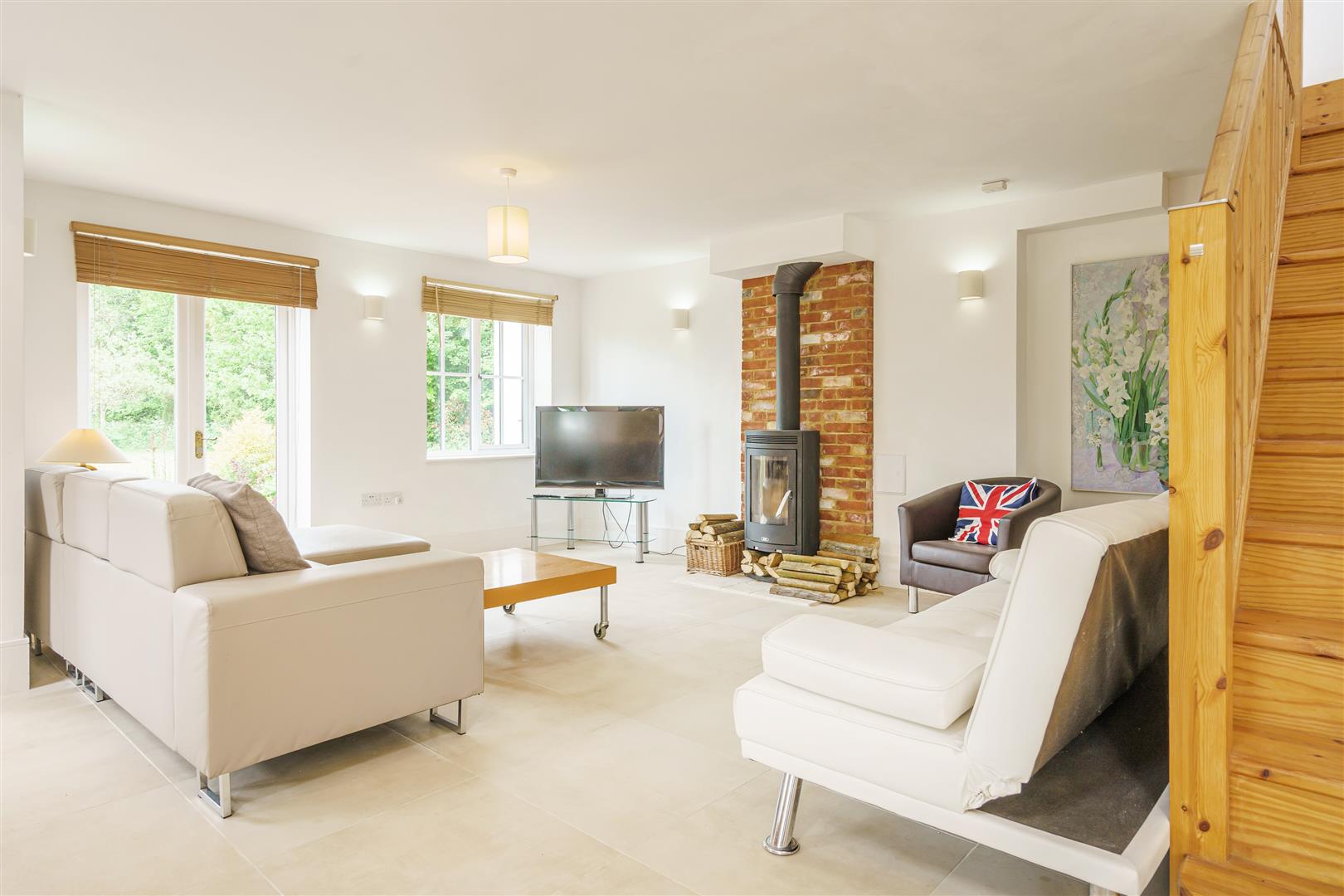 Carefully designed to suit contemporary multigenerational living, the open plan sitting/dining area boasts bi-folding doors that open to the garden, underfloor heating, and a wood-burning stove.