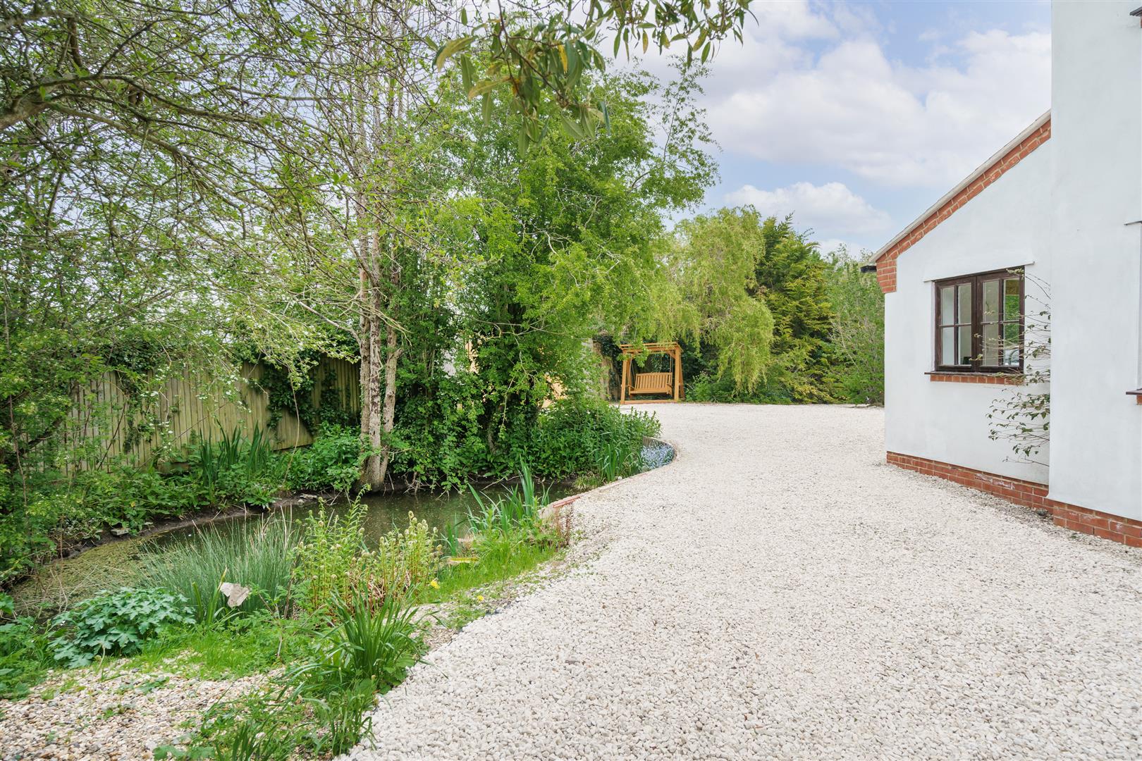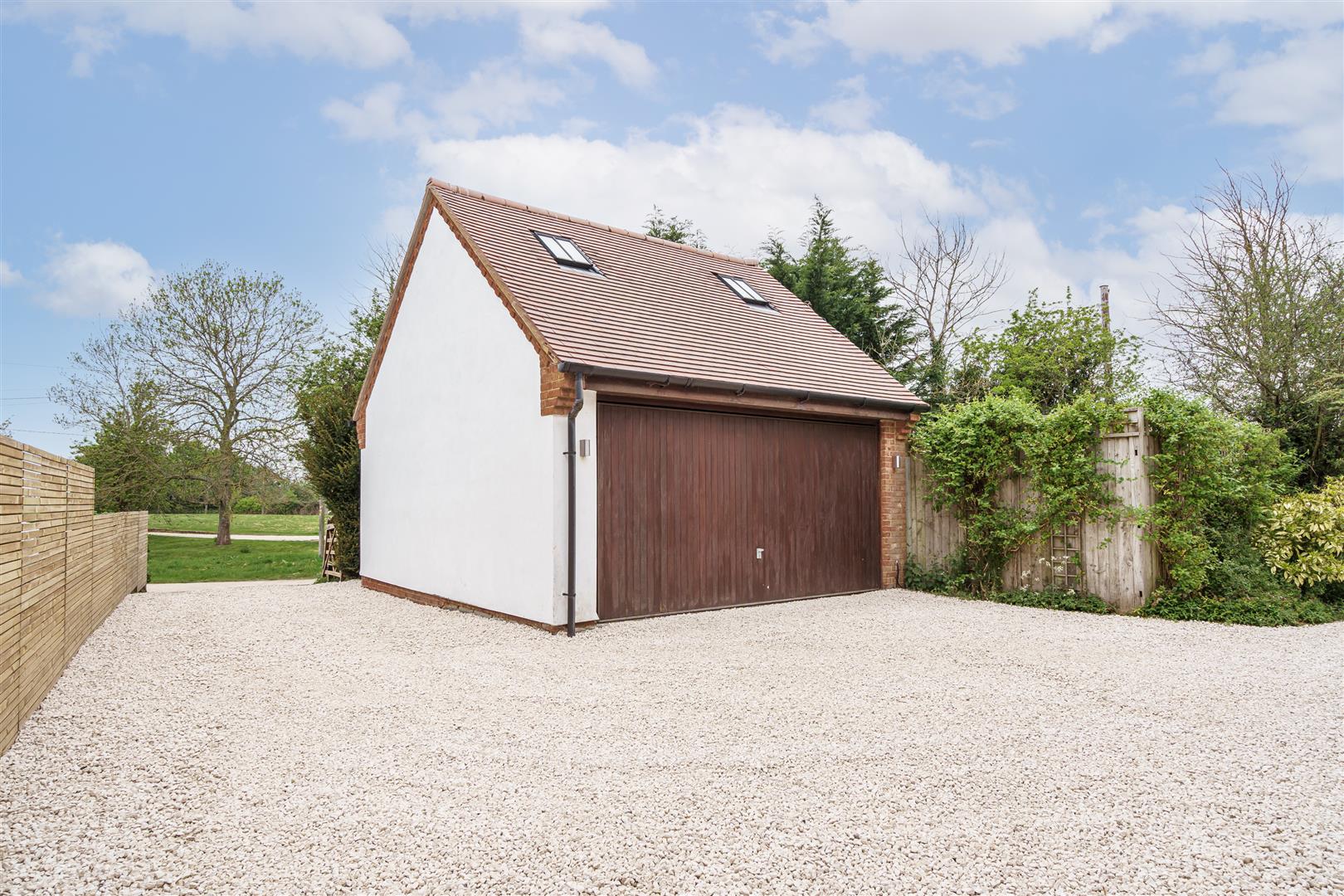 Outside to the front, a graveled driveway provides access to the double garage, which has an office above, ideal for those that work from home.