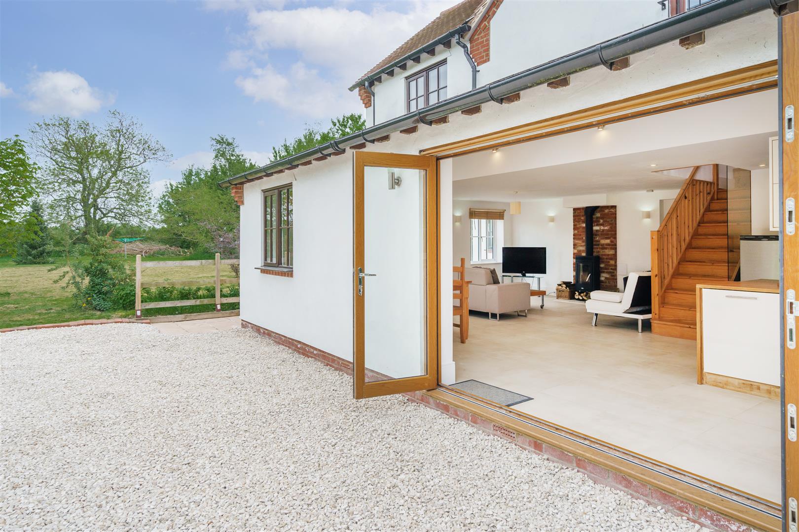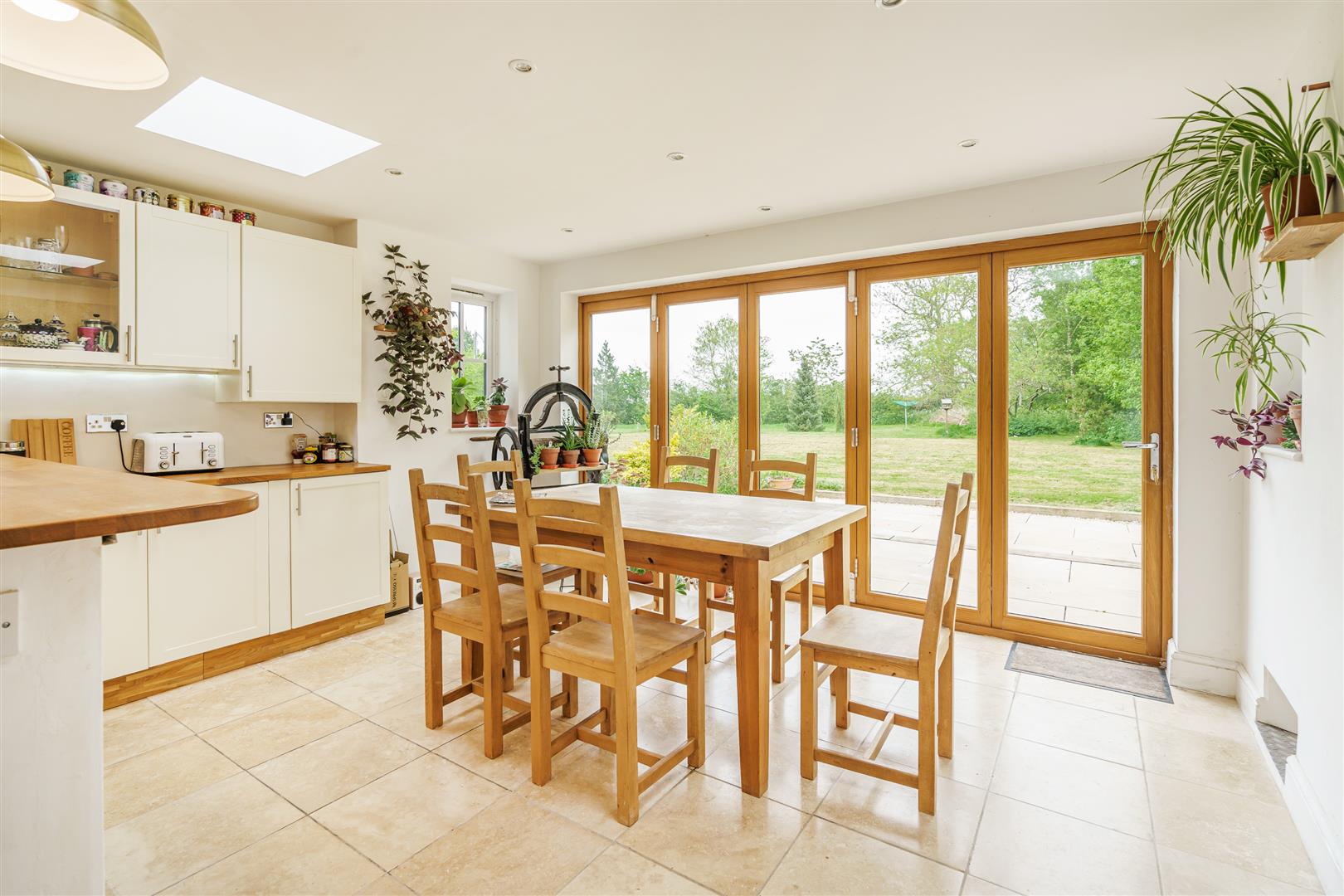 The bi-folding doors are a later addition and make for that inside-outside feel drawing you into the fabulous views over the garden and farmland beyond.