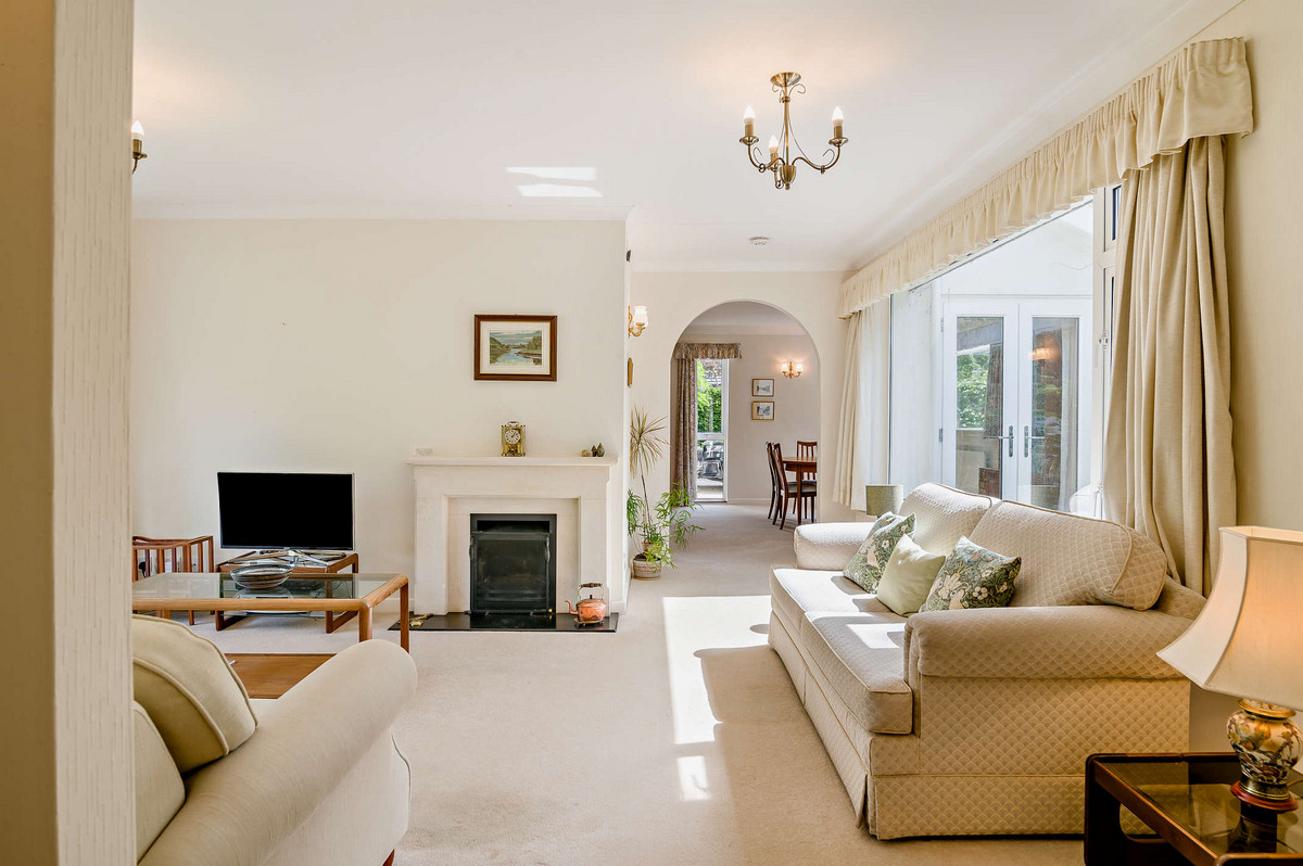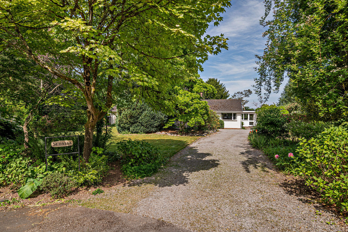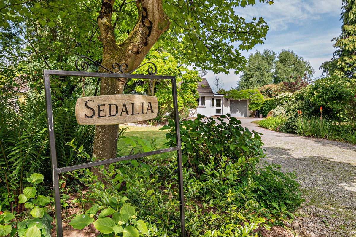 Internally, Sedalia offers spacious, light-filled accommodation across a single level. A welcoming hallway leads into an elegant sitting room with French doors that open directly onto the garden. From here, a generous dining room connects to a bespoke kitchen with serene views over the grounds. A utility room, cloakroom, and integrated garage sit to the side — offering potential for extension or reconfiguration (subject to planning).