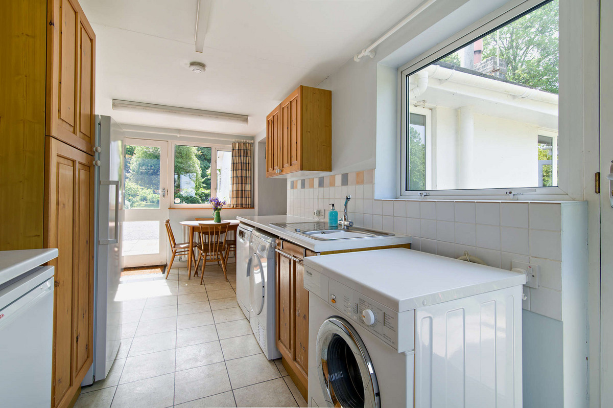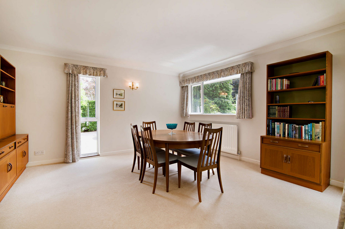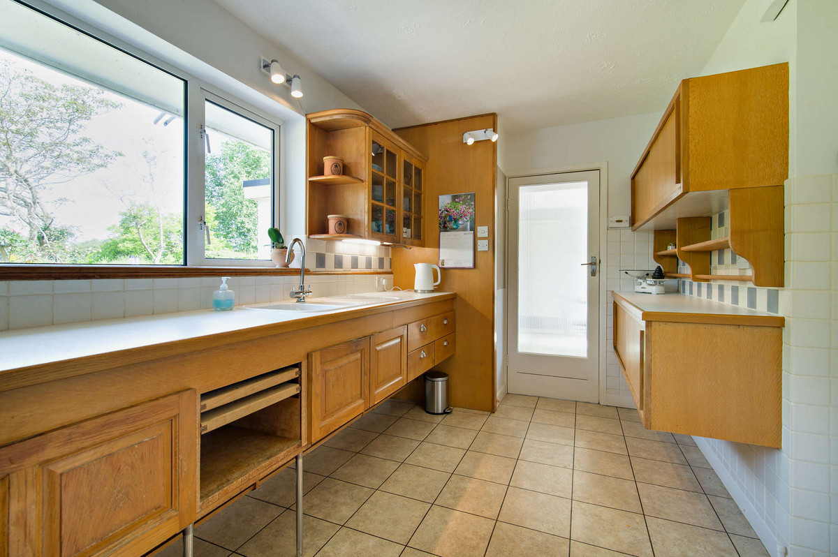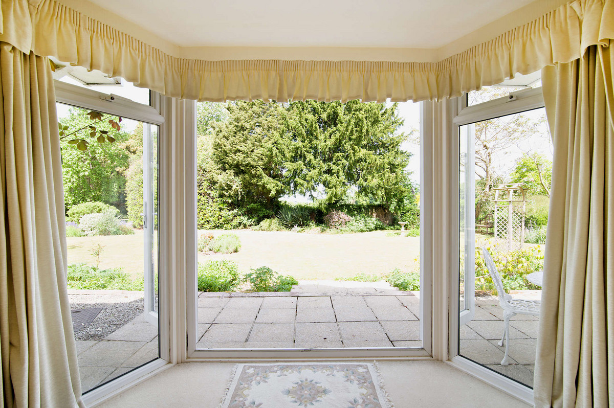 Internally, Sedalia offers spacious, light-filled accommodation across a single level. A welcoming hallway leads into an elegant sitting room with French doors that open directly onto the garden. From here, a generous dining room connects to a bespoke kitchen with serene views over the grounds. A utility room, cloakroom, and integrated garage sit to the side — offering potential for extension or reconfiguration (subject to planning).