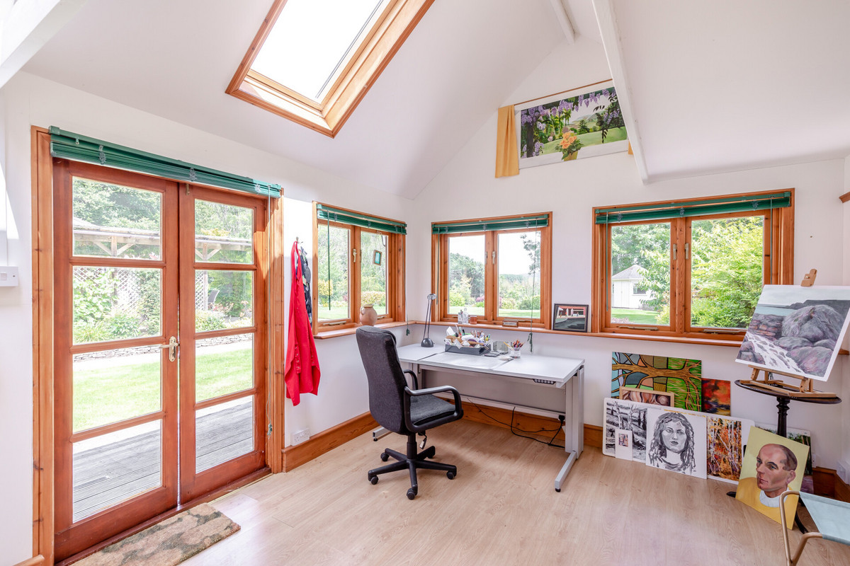 A further outbuilding, currently used for storage, could be reimagined as a summerhouse — taking full advantage of its peaceful position and stunning views.