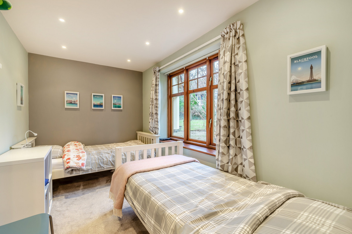 Nestled on a spacious private plot backing onto the serene Nowhere Woods, Pendle House is a bespoke detached home that exudes charm and timeless sophistication. Approached via a sweeping driveway, the property welcomes you with its picturesque curb appeal, ample parking, a detached garage, and a large, well-manicured lawn.