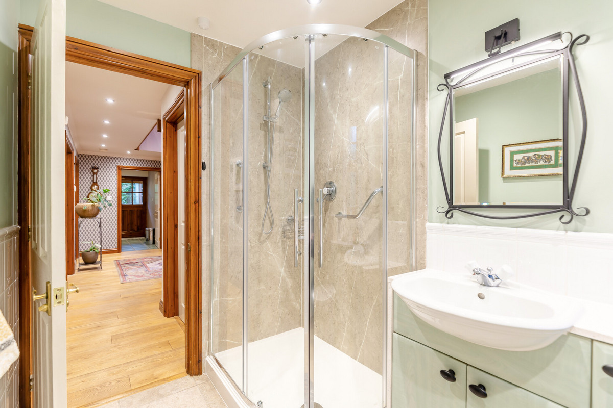The ground floor also features two well-appointed bedrooms, one of which is currently used as a second sitting room or snug, along with a modern shower room. Practical touches include underfloor heating, a spacious utility room, and an under-stair storage cupboard, ensuring the home is as functional as it is beautiful.
