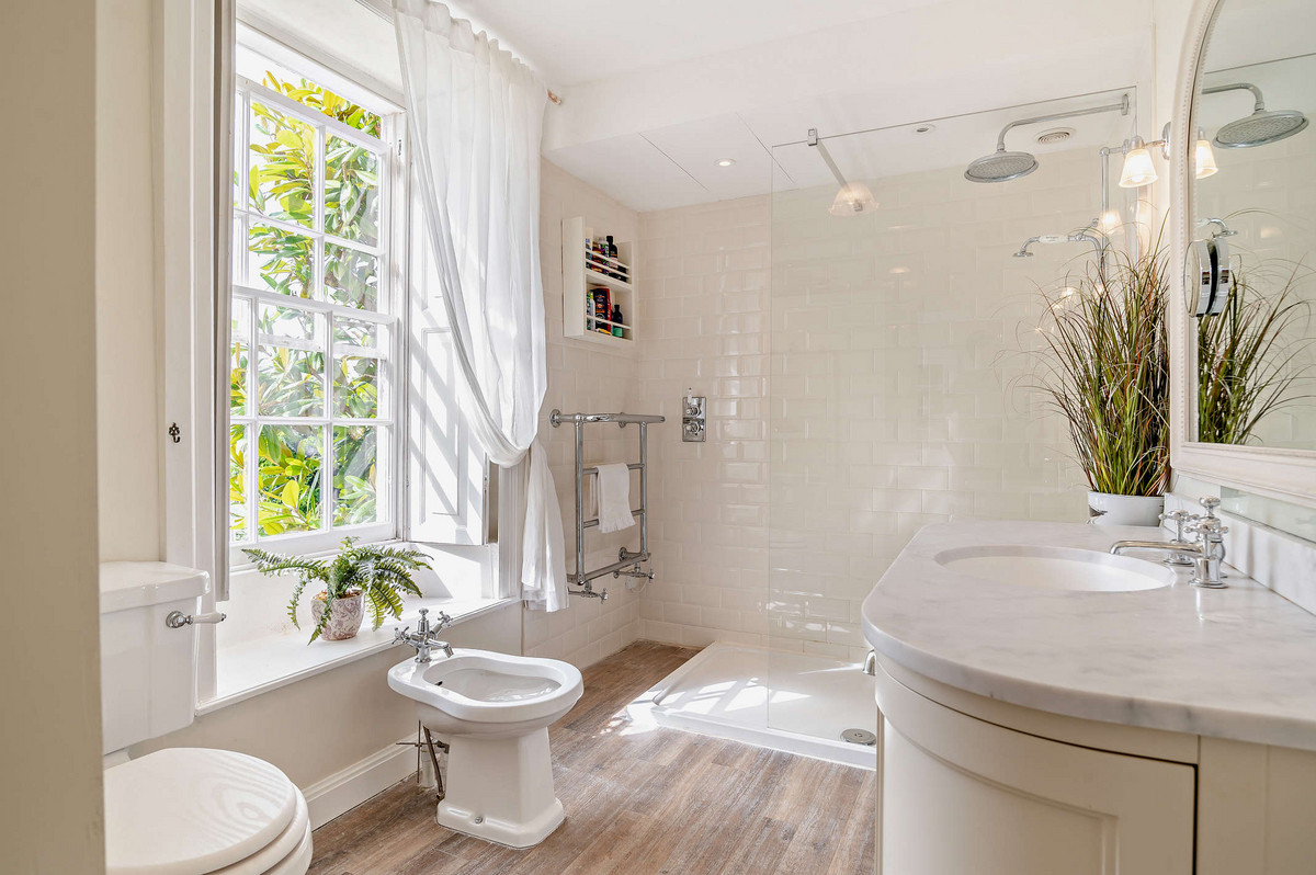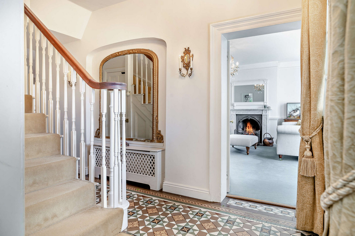 Step into a world of refined elegance as you enter the grand foyer adorned with original period features. This tastefully restored Georgian residence epitomizes timeless charm, where sash windows with shutters, ornate fireplaces, and period floor tiles blend harmoniously to create an ambiance of sophistication.