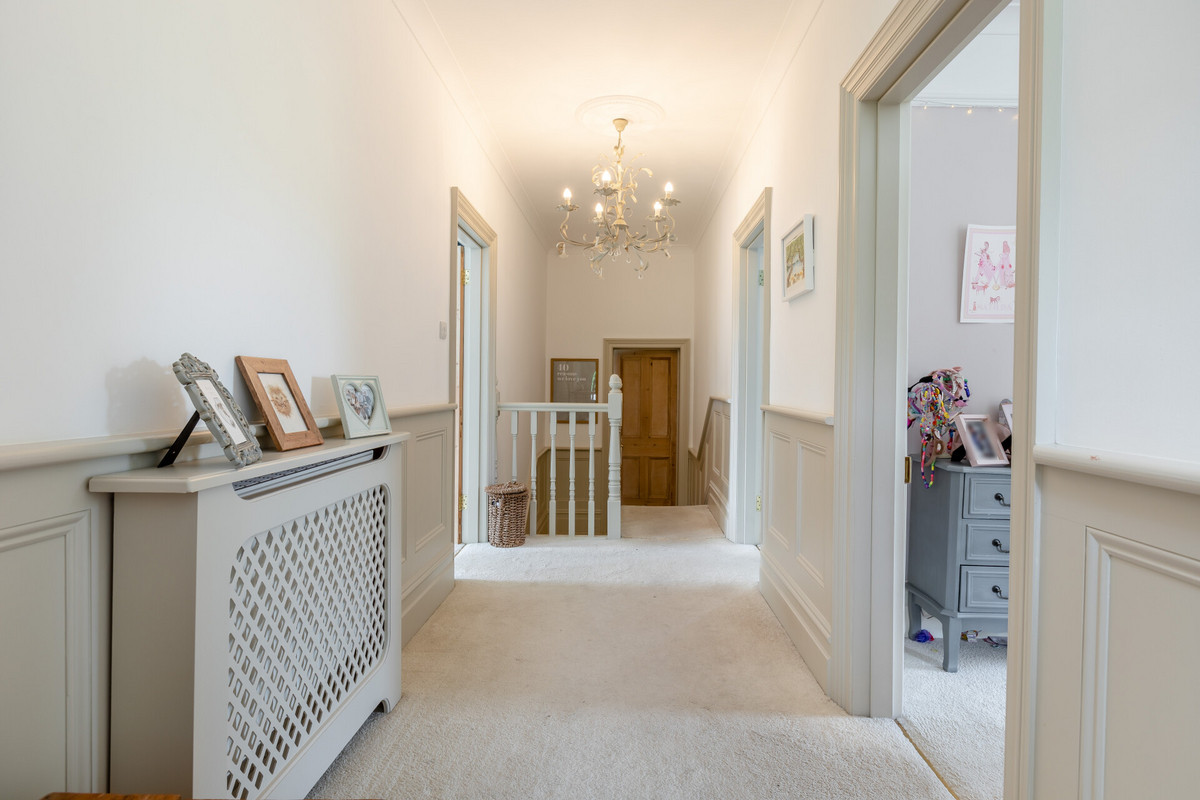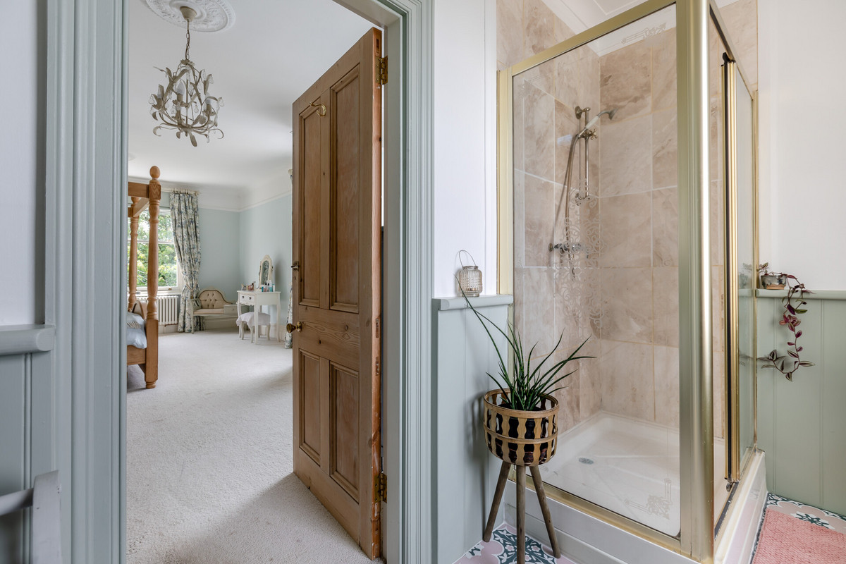 The first-floor hosts three well-proportioned bedrooms and two stylish bathrooms featuring beautiful fittings and thoughtful design, adding a touch of luxury to everyday living. The top floor reveals a tranquil fourth bedroom with wraparound eaves storage and delightful rural outlooks.