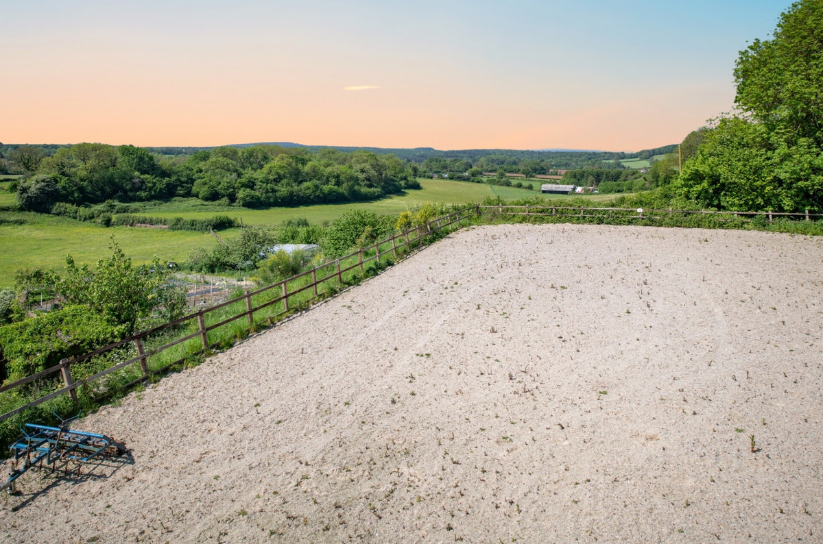 Perfectly suited for equestrian enthusiasts or those seeking a rural lifestyle, the grounds include three stables, two barns, and a garage/workshop, along with an elevated ménage and paddocks ideal for horse owners. Additionally, the property benefits from easy access to a network of bridle paths that weave through nearby woods and hills, offering scenic routes for hacking and endless opportunities to explore the stunning countryside on horseback.
