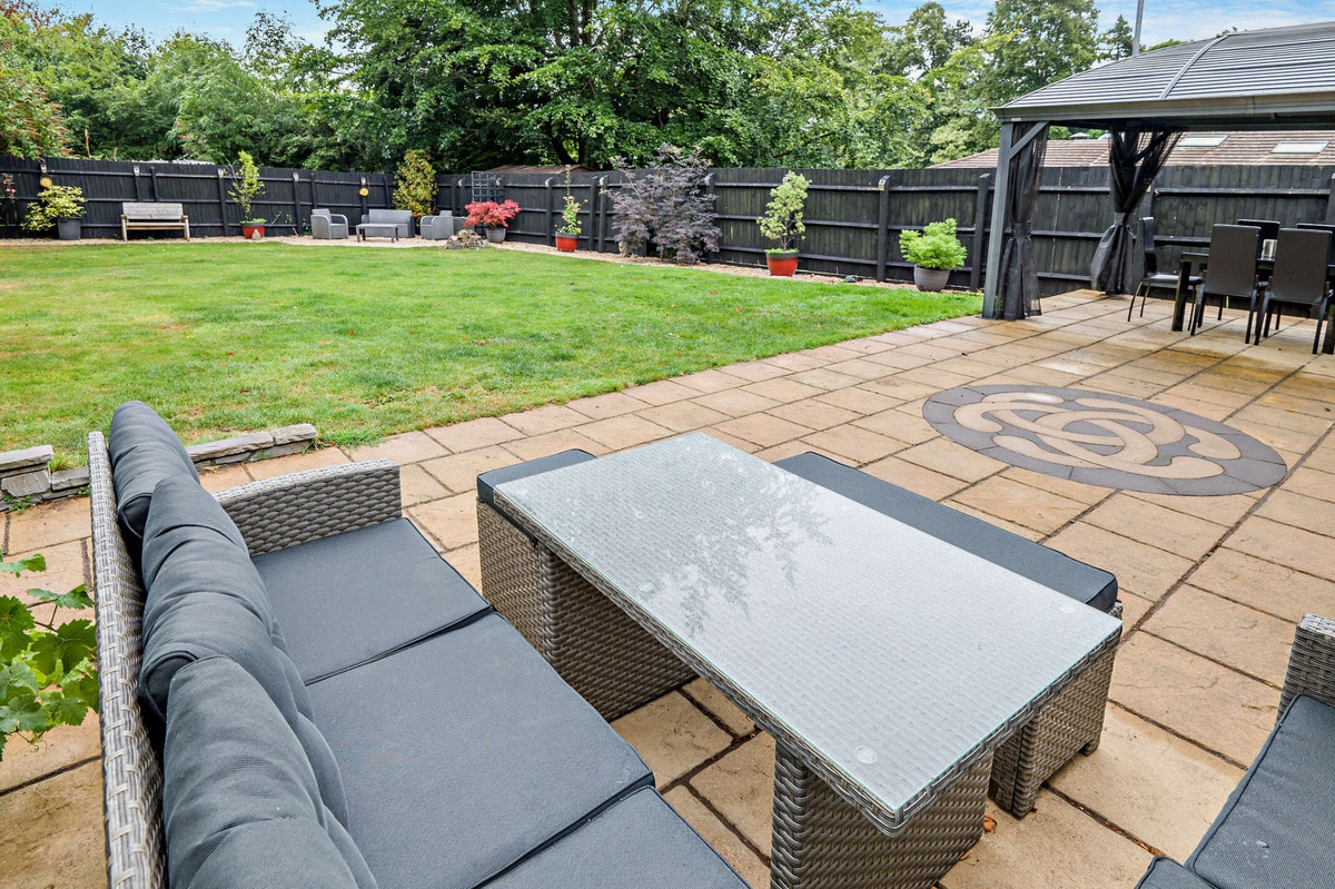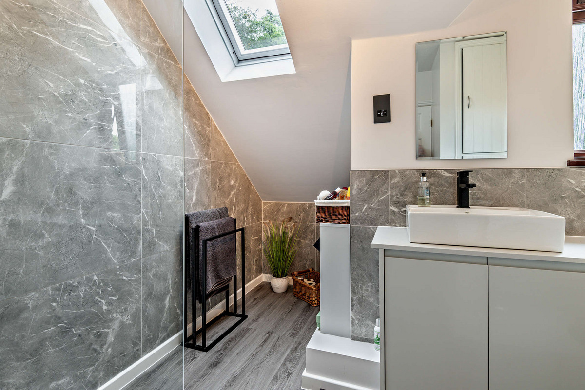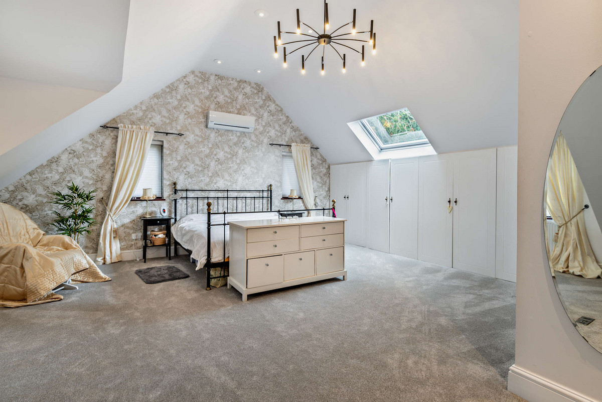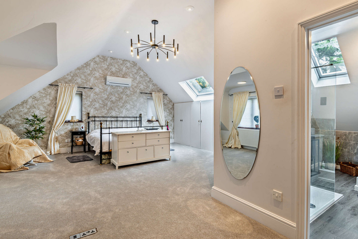 Upstairs, the sumptuous principal suite boasts extensive wardrobe space and a luxurious en-suite shower room. The guest suite, three additional double bedrooms, and a family bathroom provide ample accommodation for a growing family.