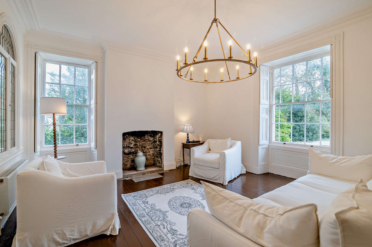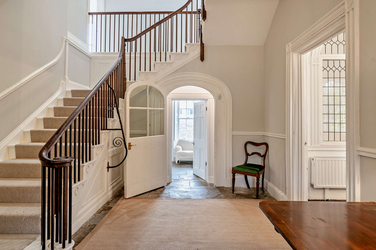 Approaching the property, the eye is drawn to the imposing spiral fluted columns, reminiscent of a bygone era. Beyond the handsome portico, the grand entrance hall extends a warm invitation with its flagstones and signature Georgian staircase, poised to elegantly display the tallest of Christmas trees. From here, each room unfolds with meticulous craftsmanship, boasting doorcases with reeded jambs and lintels, and delicate rosettes nestled in angles, adding to the home's timeless allure.