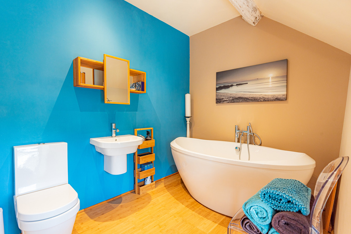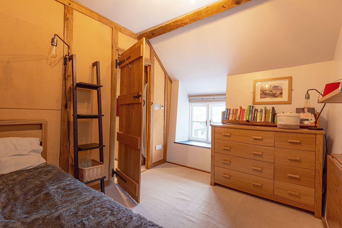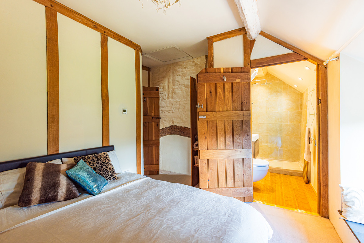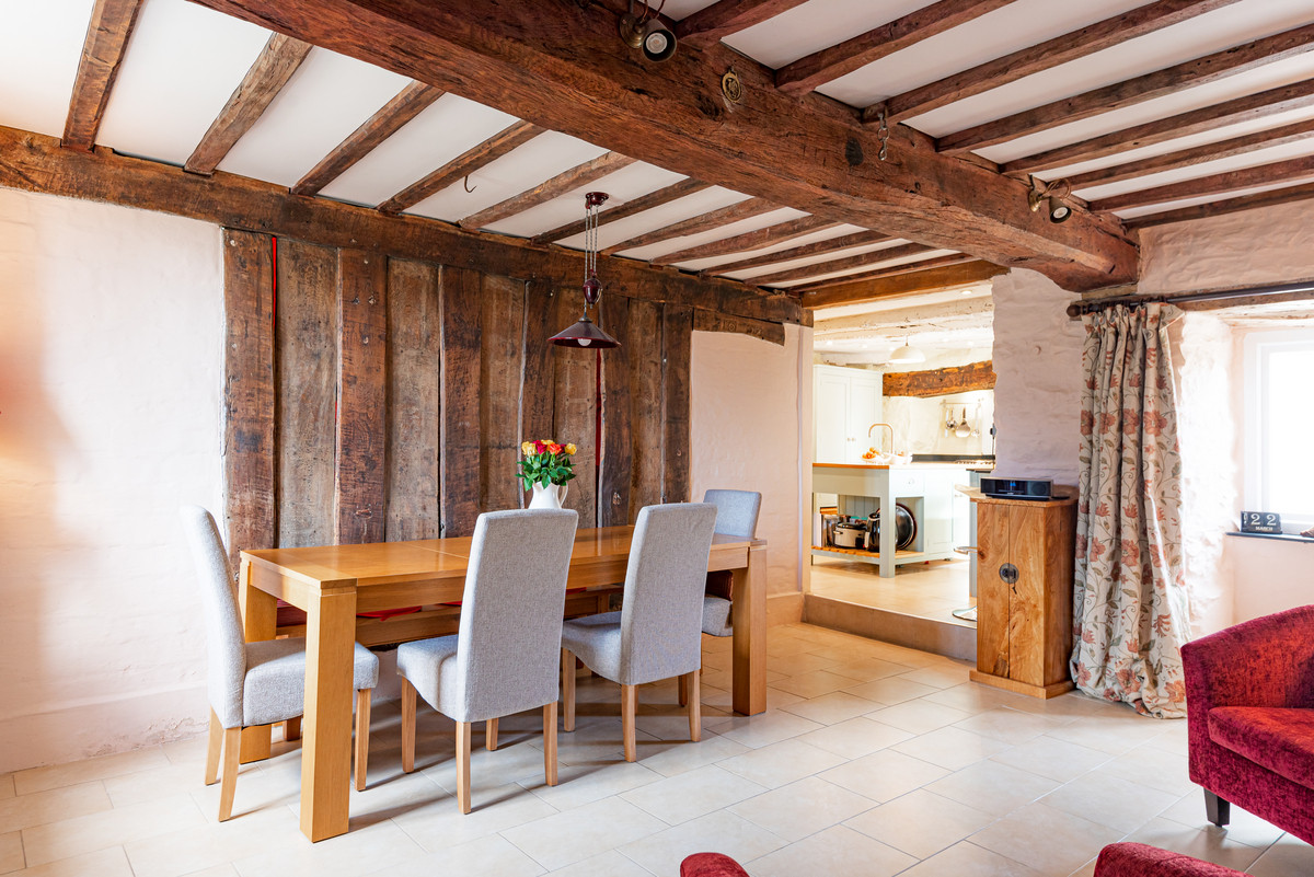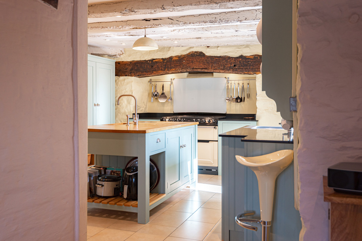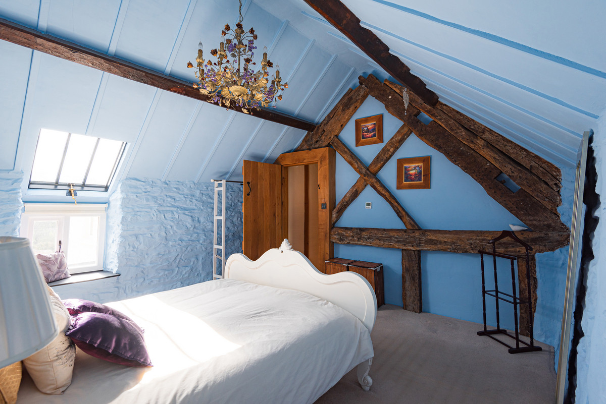 “We have completely renovated and updated the house. The changes made since the 1960s had left the property very tired and not very functional. Downstairs, we moved the door into the utility room and removed most of the internal dividing walls to create a better flow. Upstairs, all of the rooms (except the main bedroom) were re-arranged, again to create a better flow to the property. The non-load-bearing internal walls were created using green oak, all carefully made with mortice and tenon joints, pegged with oak pegs. These have matured and provide a lovely atmosphere and aesthetic.