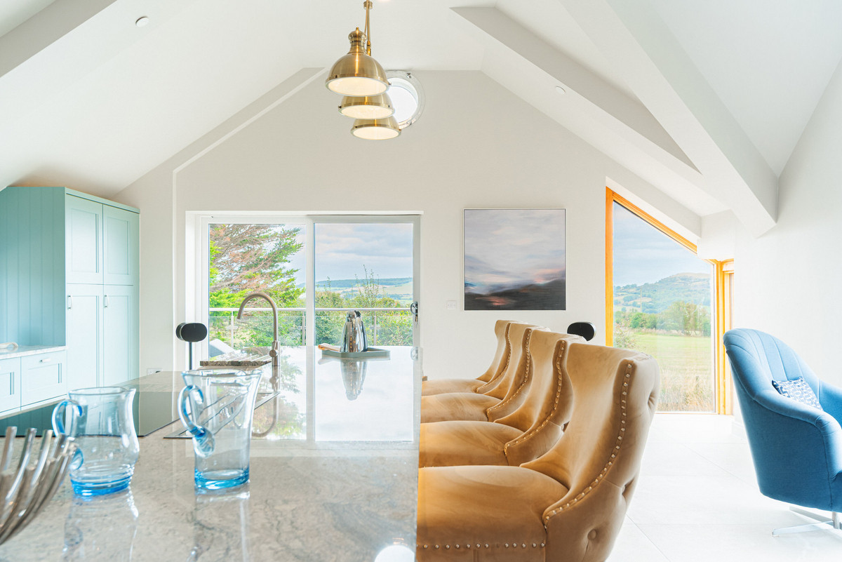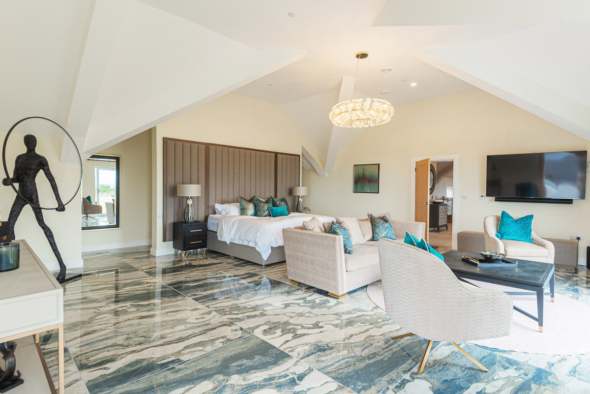 A modern masterpiece with magnificent open plan living/entertaining space, six en-suite double bedrooms, further reception rooms, 7.5 acres, exceptional, far reaching coastal and mountain views and an ‘A’ energy efficiency rating.