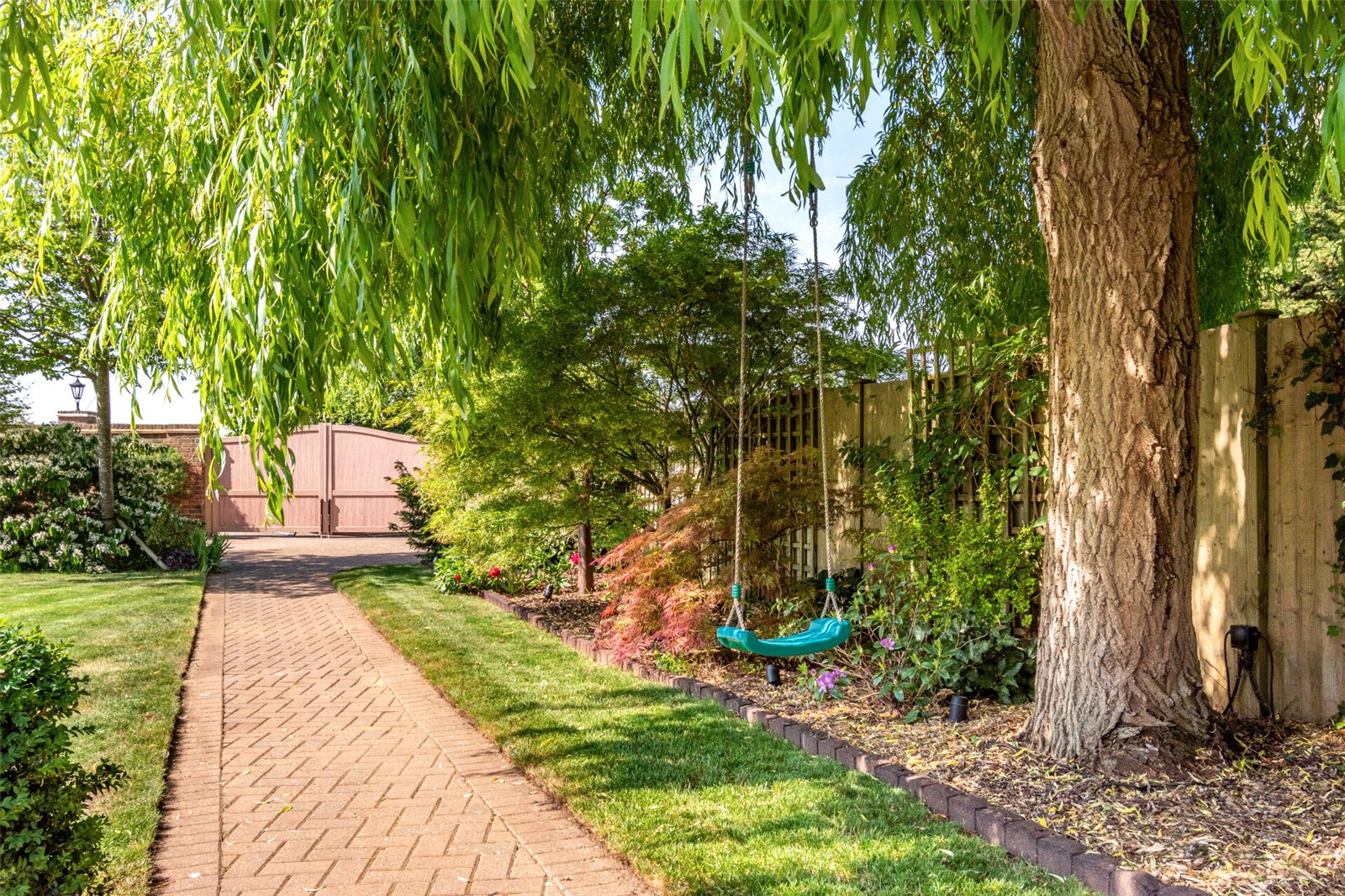 Garden Overall Plot 0.17 of an Acre. White granite patio. Lawn areas. Block paved patio to rear with double gates. Flower beds primed for irrigation system. Decked area. Walled and fenced. Two side gates. Timber summer house. Willow tree. Subterranean 1,000 gallon reservoir. Two mains taps. Outside power points. Spotlights in flower beds.
