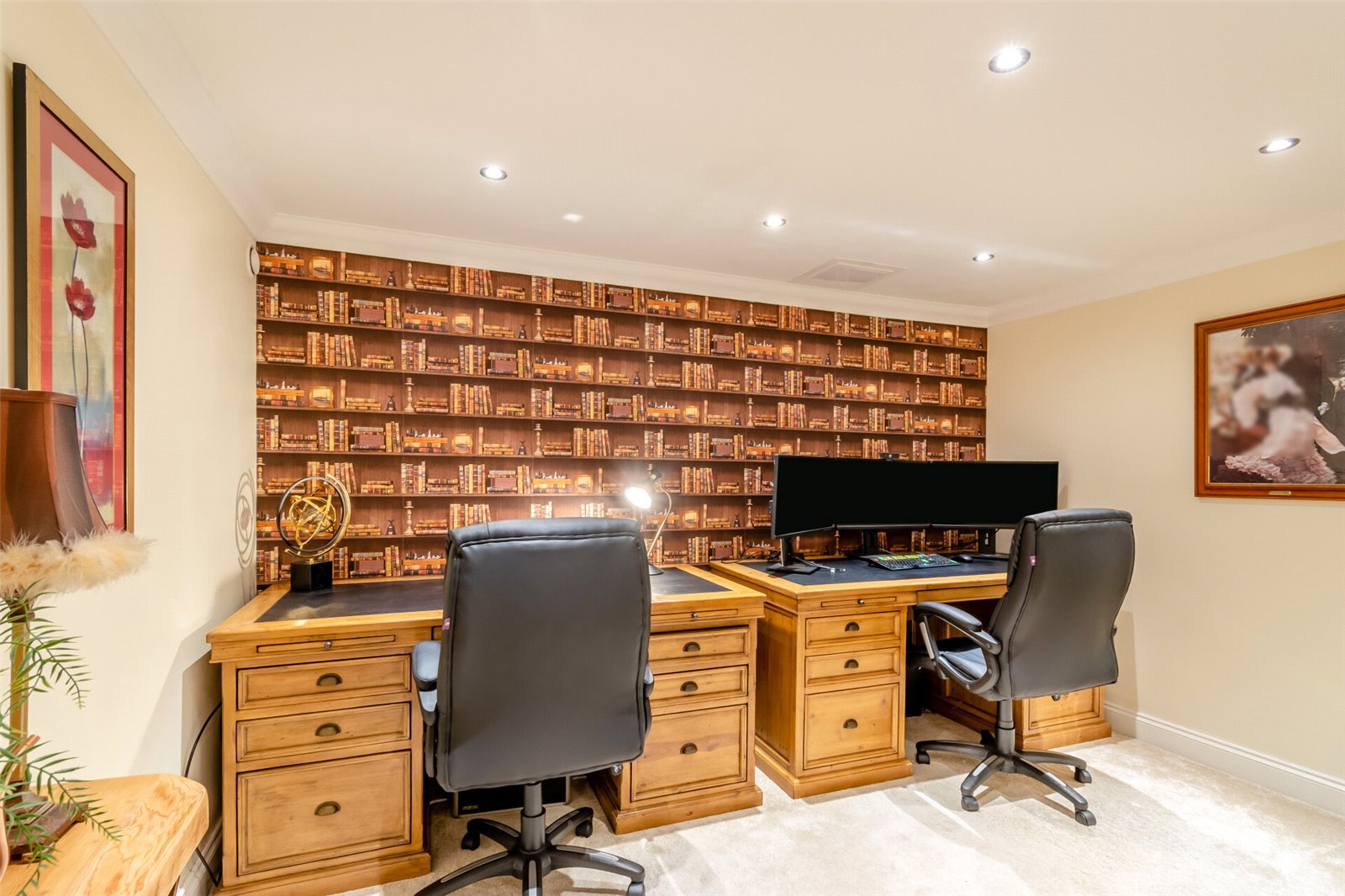 Gym/Office 16'2" x 12'11" (4.93m x 3.94m). 'L'. shaped. Plain coved ceiling. Carpet. Underfloor heating. Down lighters. Air circulation system.