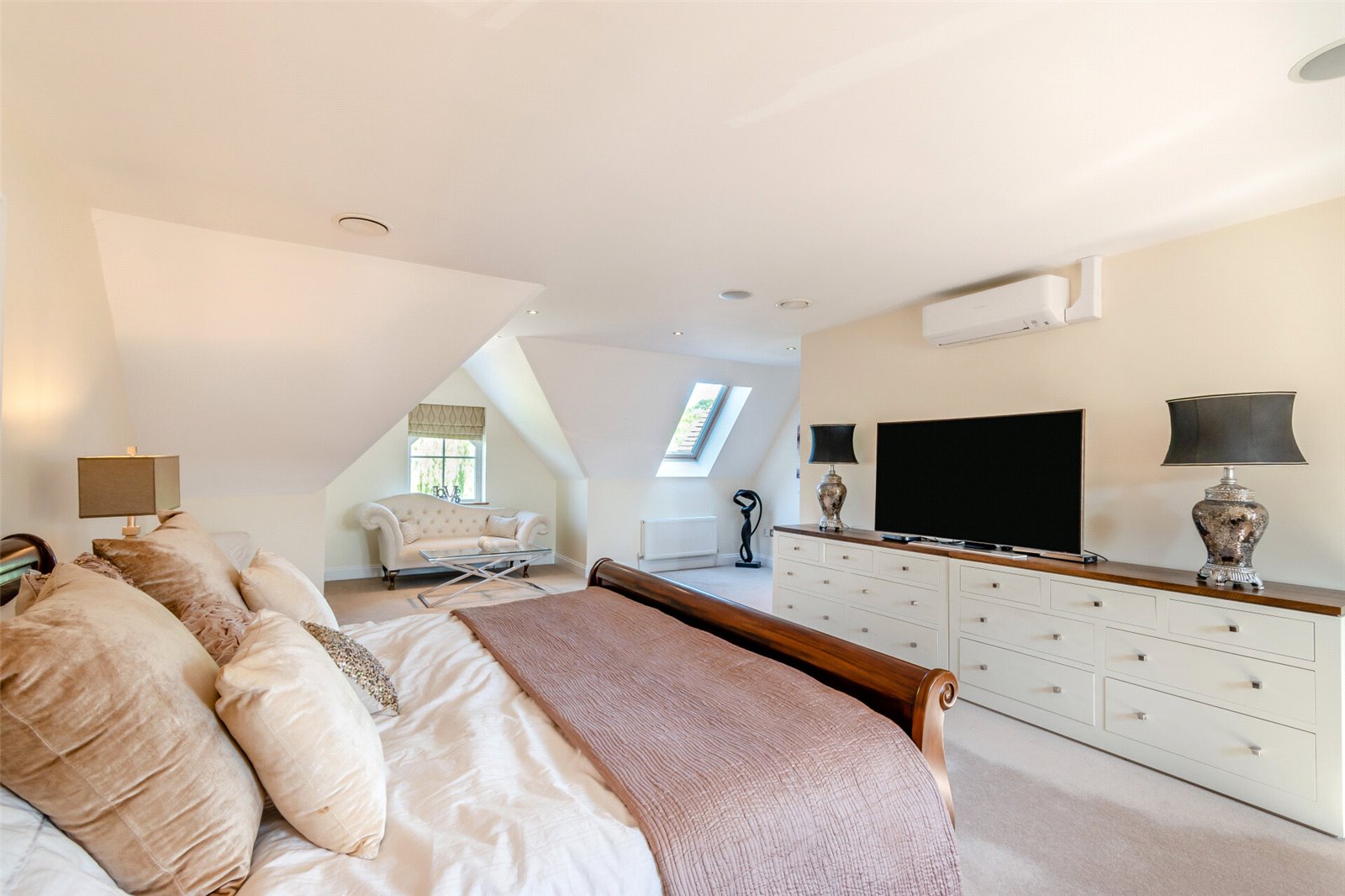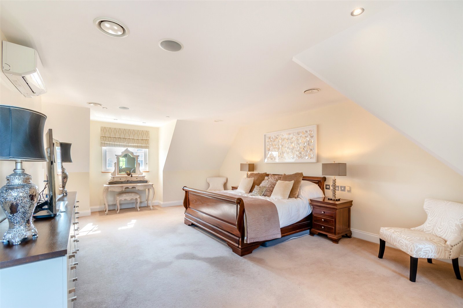 Main Bedroom 31'2" x 19'7" (9.5m x 5.97m). Georgian style double glazed window to front and rear. Velux window to rear. Fitted carpet. Three radiators. Mitsubishi air conditioning system. Bang and Olufsen ceiling speakers. Panic button. Alarm control.