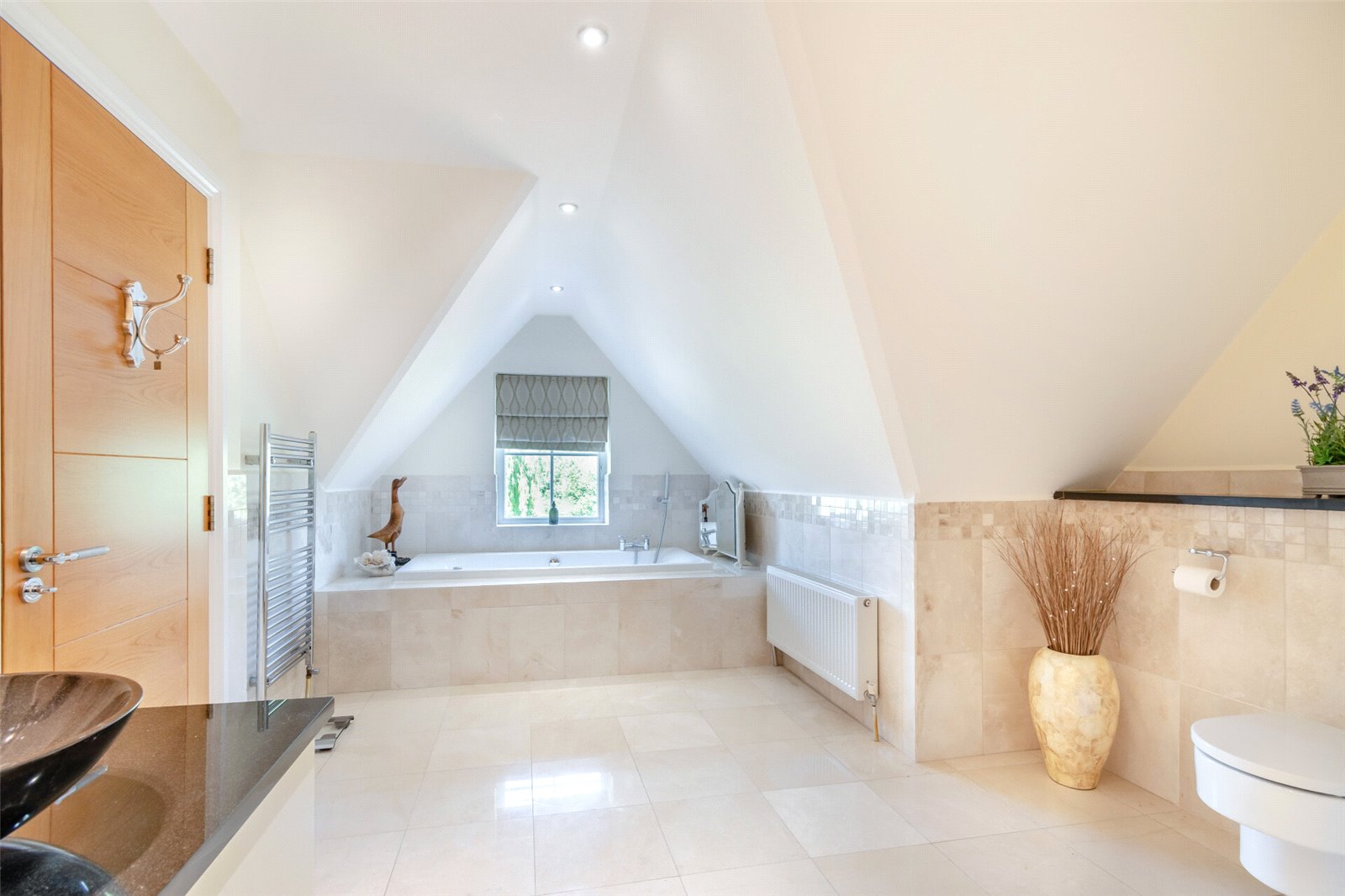 En-Suite Bathroom 11'1" x 8'9" (3.38m x 2.67m). Porcelain tiled floor. Plain ceiling. Underfloor heating. Down lighters and extractor. Heated towel rail. White Roca suite comprising of panelled bath with shower attachment and mixer tap, low level WC, wash hand basin and walk-in shower. Shaver point. Tiled walls. Window Shutters.