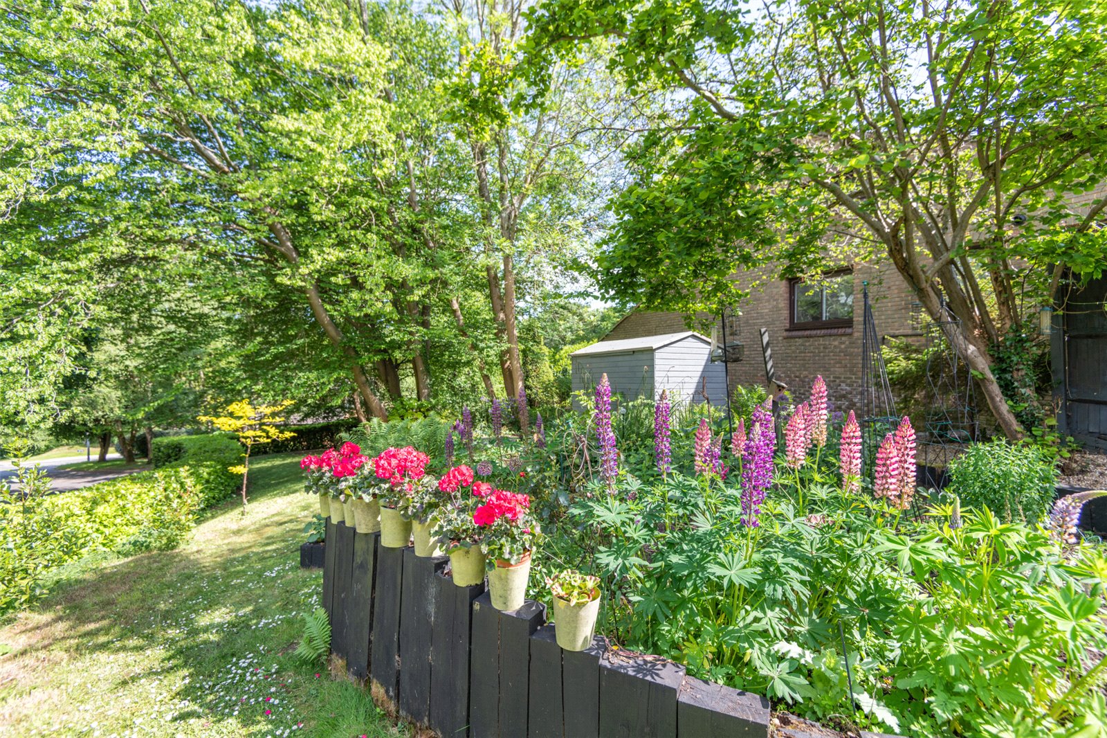 . The garden, set into the natural slope, bursts into life each spring with wildflowers, crocus, and primroses. We have cultivated a woodland garden full of colour, textures, and quiet moments, including a water feature and curated planting beds. The front garden's raised bed is a canvas of perennials all year round.