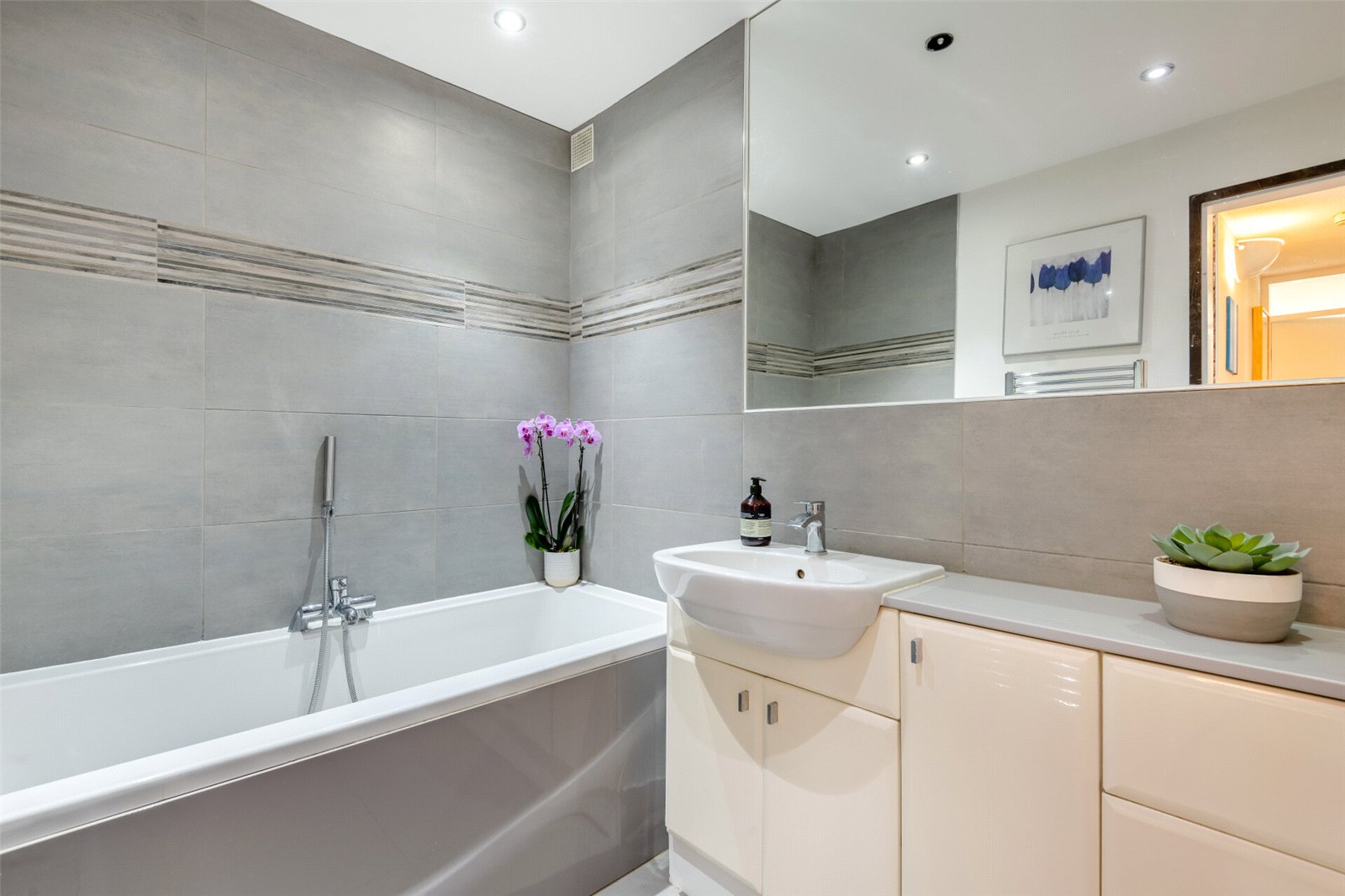 Family Bathroom 8' x 5'4" (2.44m x 1.63m). Tiled flooring. Plain ceiling with downlights. Heated towel rail. Panelled bath with shower attachment and mixer taps. Wash hand basin in vanity unit. Low level WC. Wall mirror. Local tiling to walls.