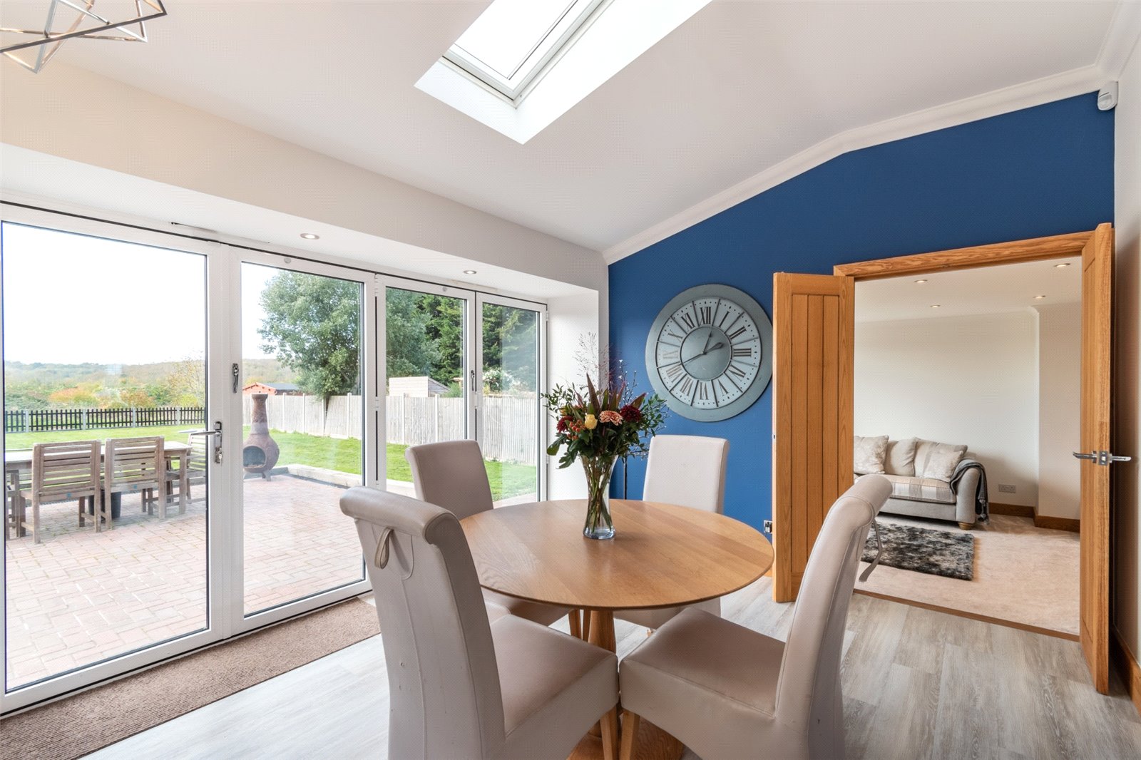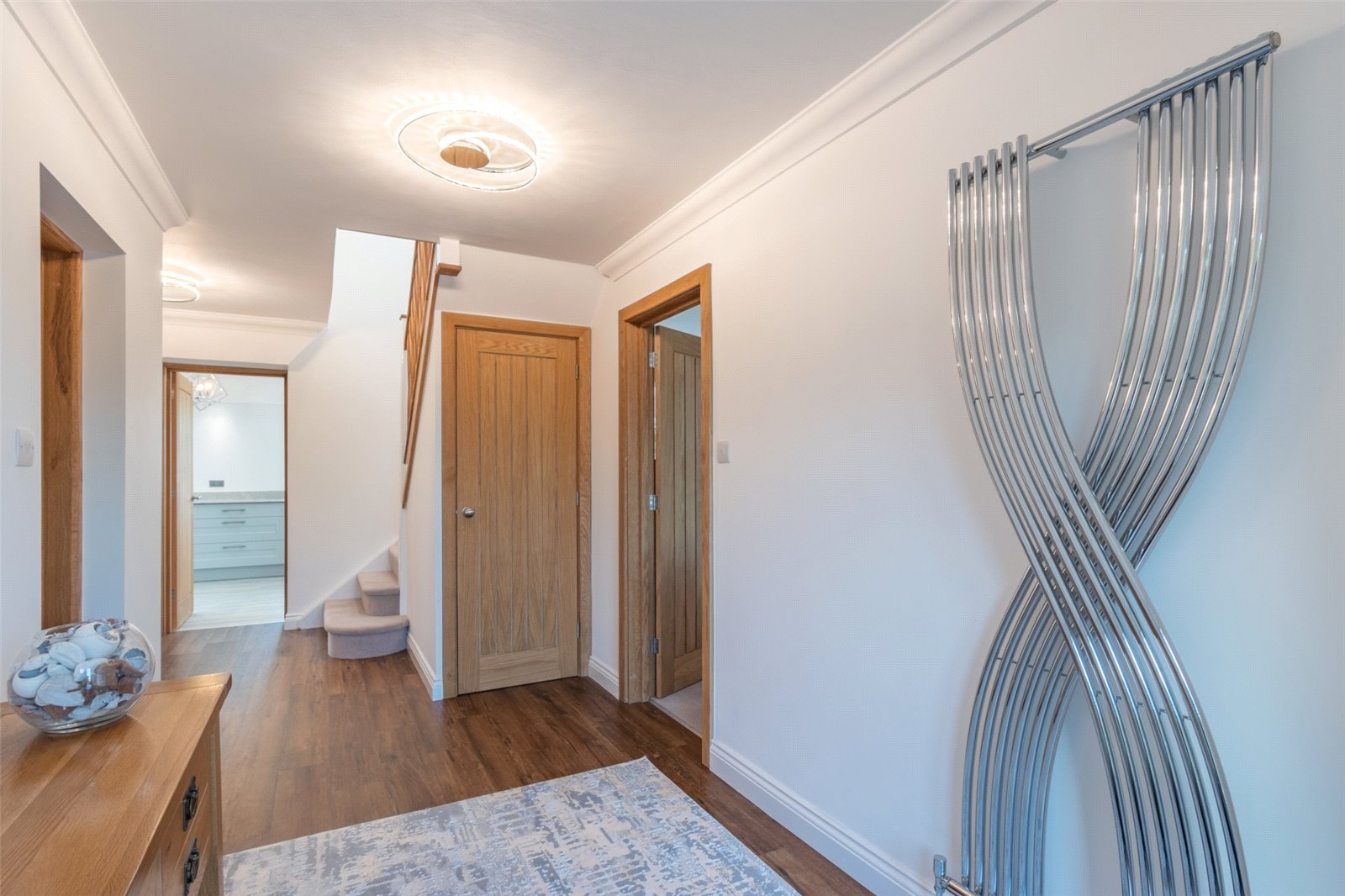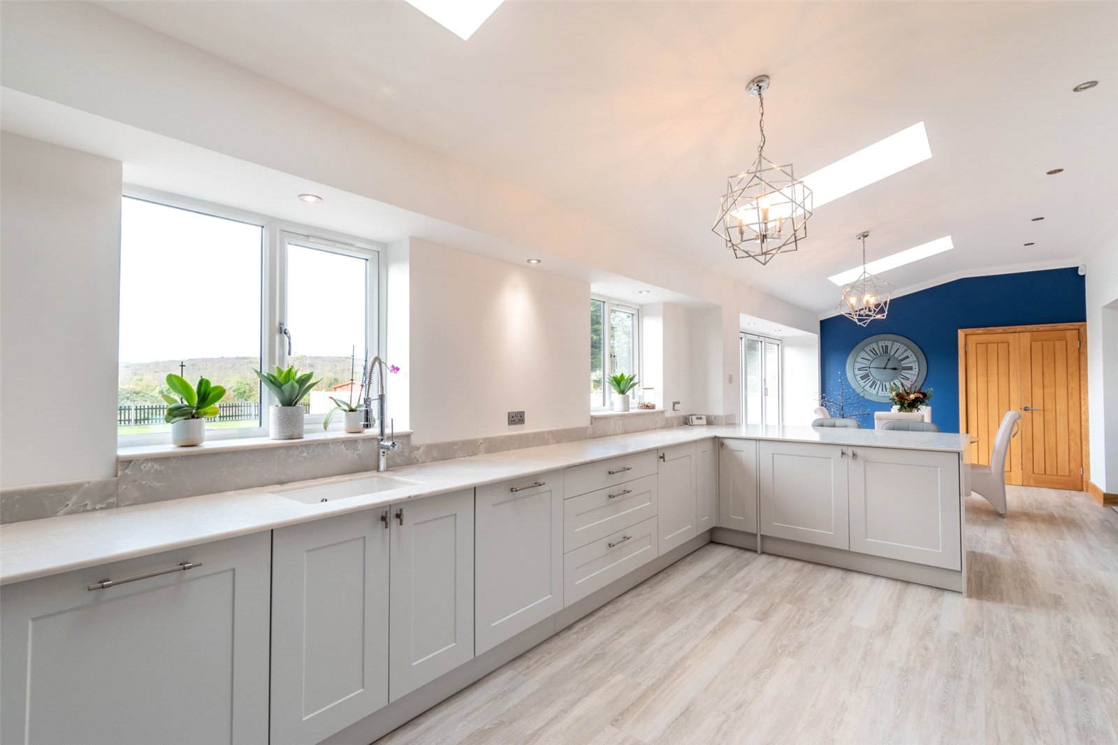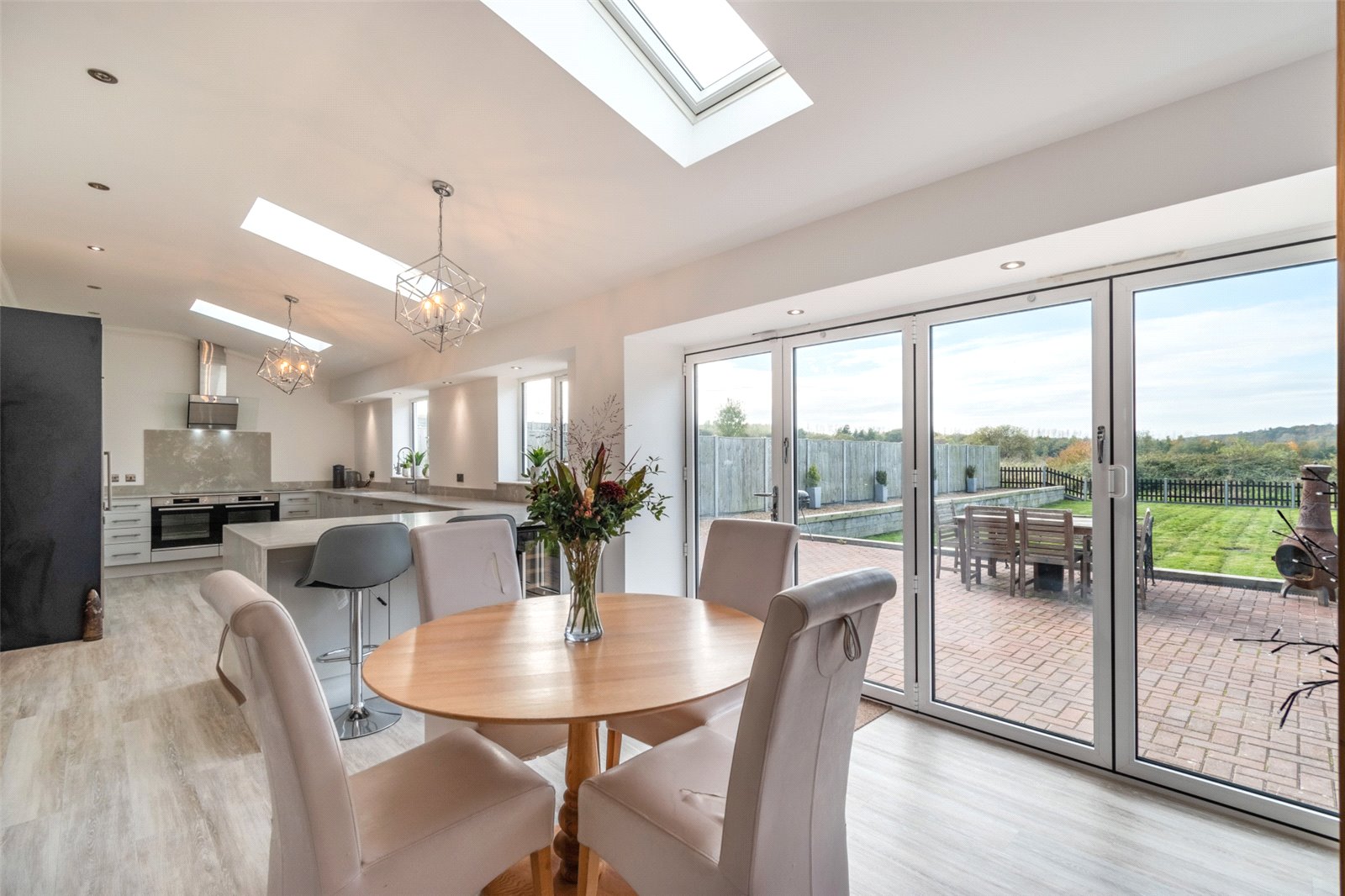 Set in this enviable position backing and fronting onto fields. This stunning five bedroom detached house has been totally redesigned with modern living in mind. The spacious entrance hall leads you through to bespoke kitchen/dining room with vaulted ceiling. Bi-fold doors open onto south west facing patios and gardens. There are two large reception rooms, separate study and utility/boot room. The first floor provides master bedroom with en-suite, the four bedrooms are serviced by two further bathrooms. There is ample parking and practical double garage.