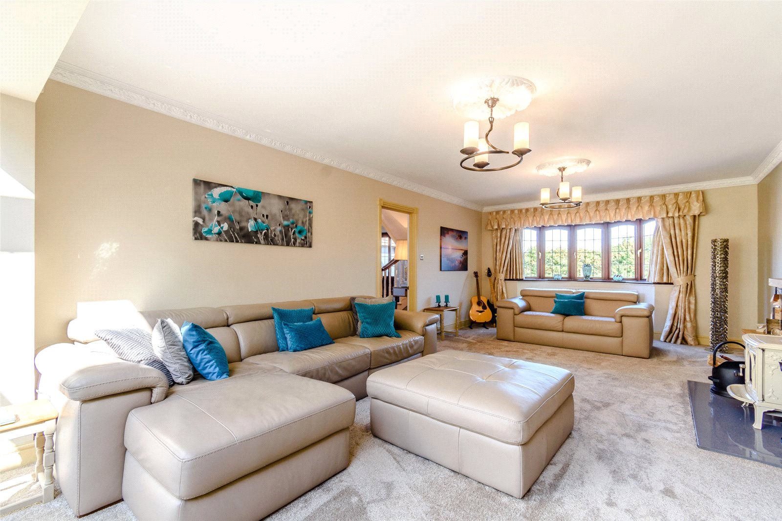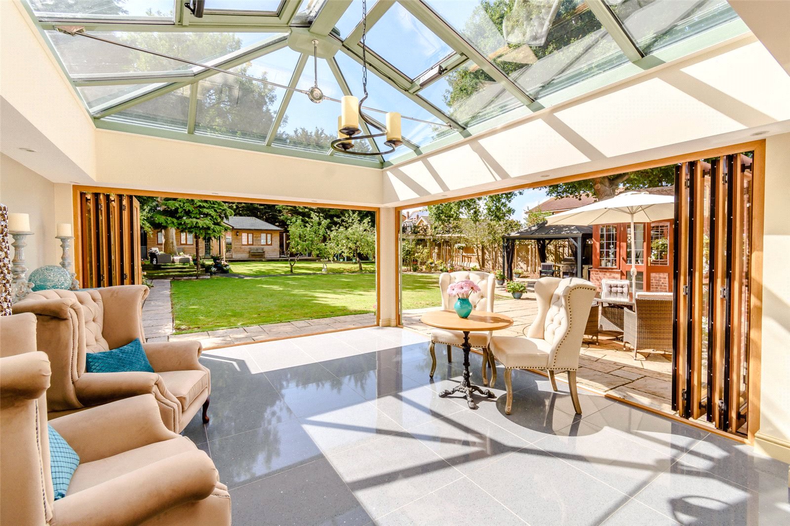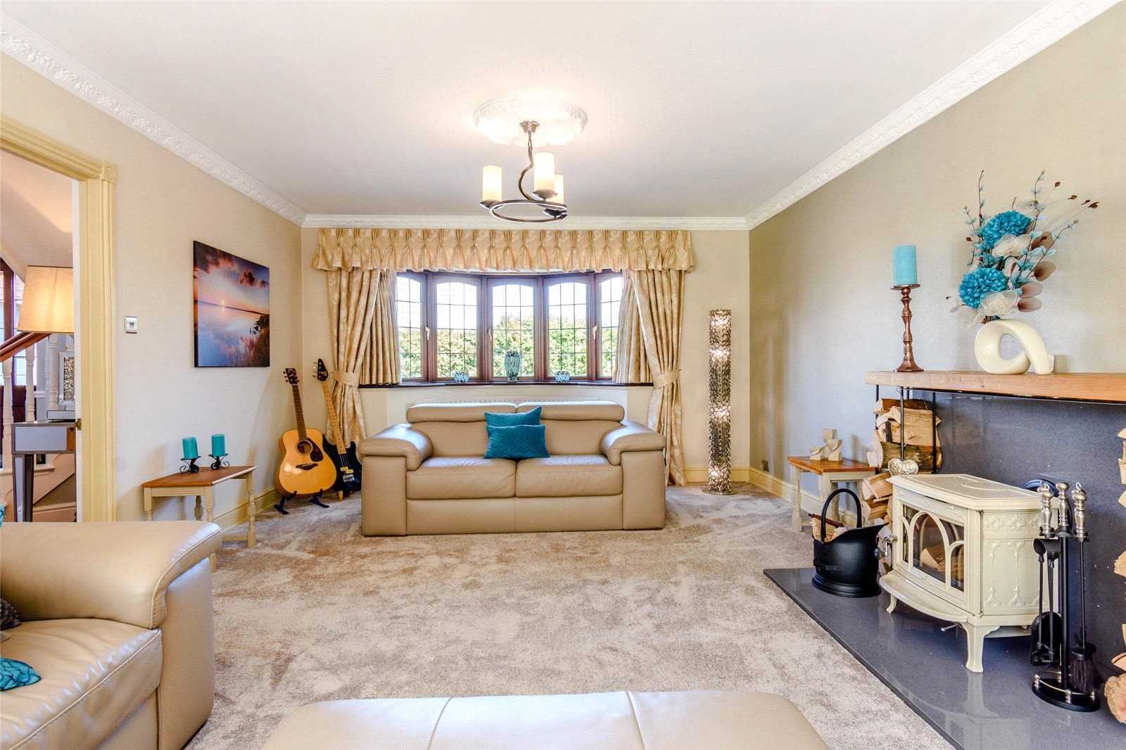 Rarely does such an immaculately finished property come to the market? Overlooking farmland to the front and set on southfacing plot. This five bedroom family home provides accommodation extending to 2720 sq ft. The spacious lounge has log burning stove and open s out onto stunning double aspect orangery, twin sets of bi fold doors open on to the wide patio terrace and gardens. There is separate dining room and beautifully appointed kitchen/family room, a practical utility boot room leads to double garage. To the first floor is master bedroom with sumptuous ensuite. There are four further double bedrooms and family bathroom/wc. Outside the well manicured lawns leads to substantial gardens and barn, currently used as a gym.