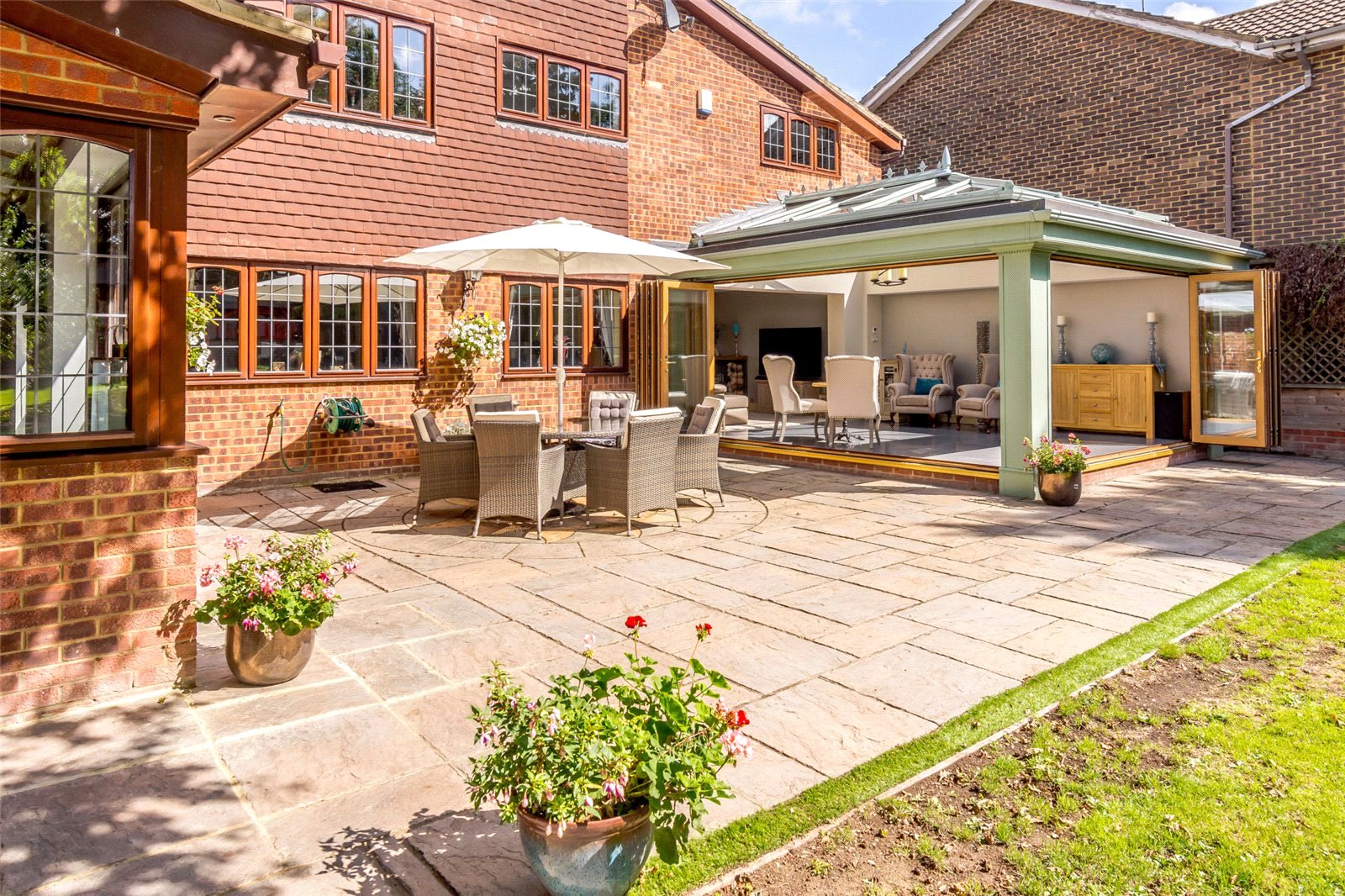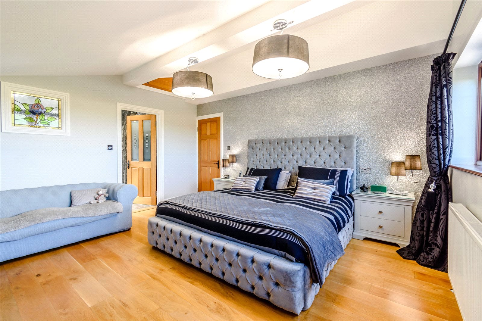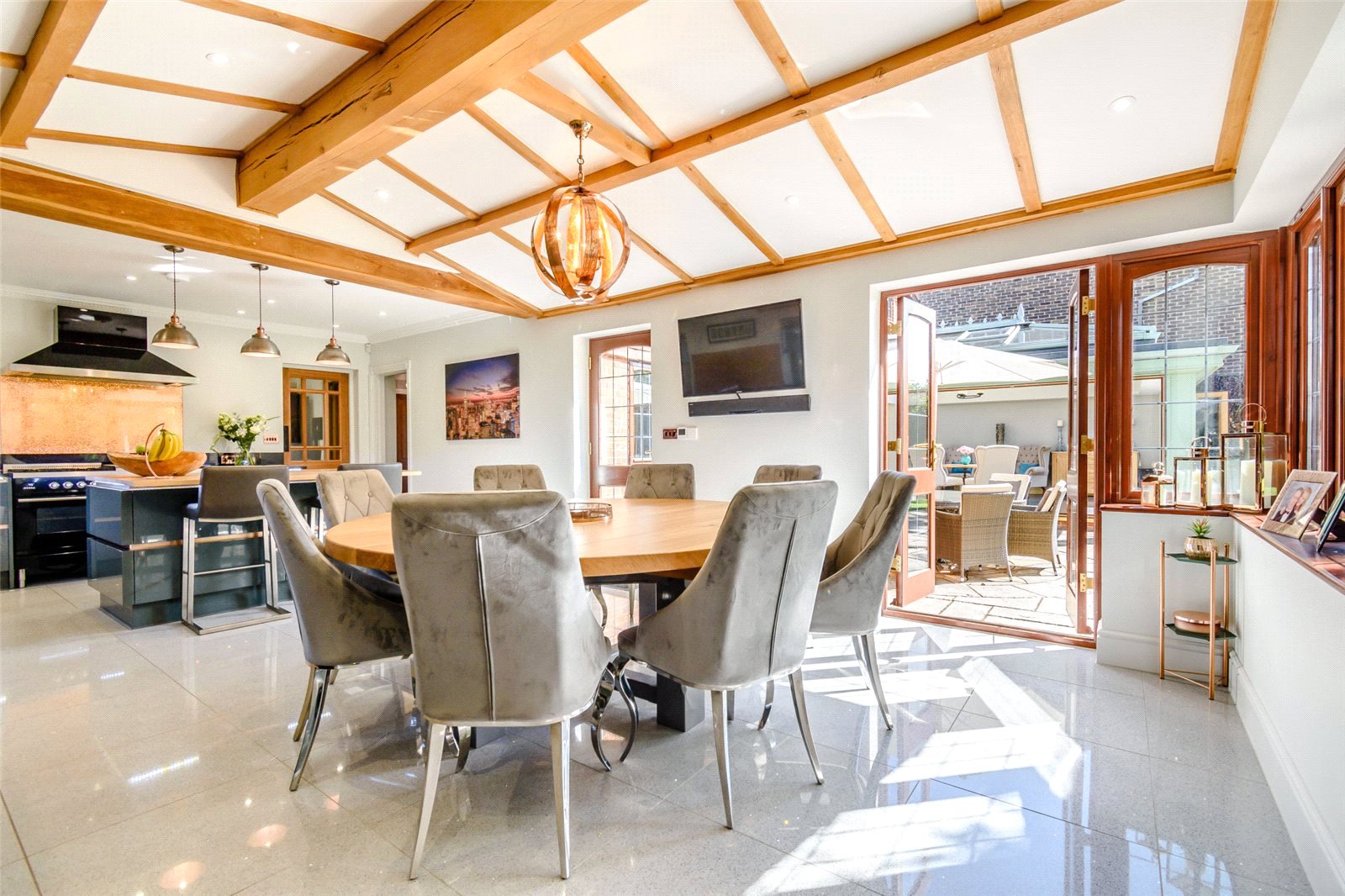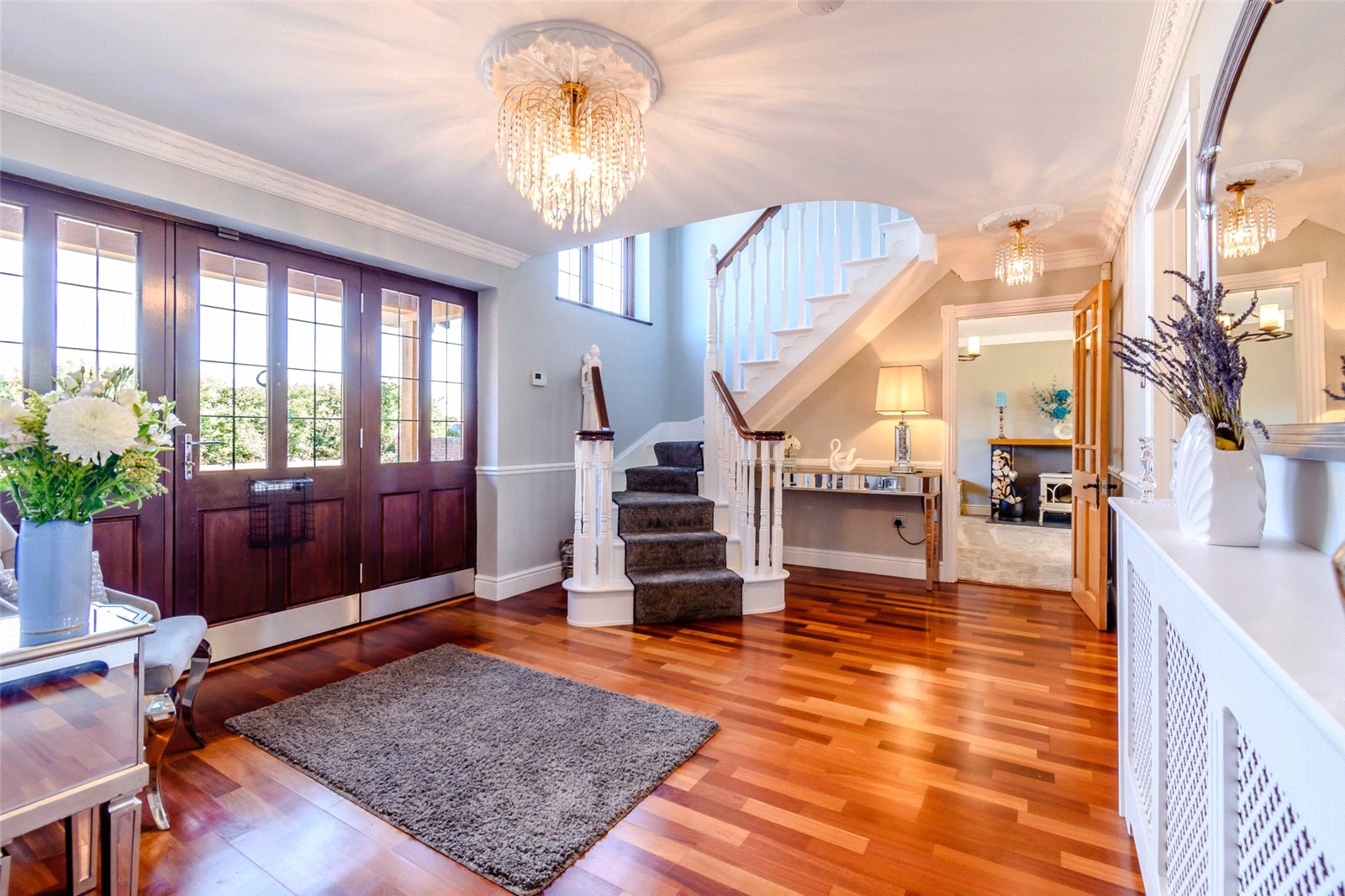 Rarely does such an immaculately finished property come to the market? Overlooking farmland to the front and set on southfacing plot. This five bedroom family home provides accommodation extending to 2720 sq ft. The spacious lounge has log burning stove and open s out onto stunning double aspect orangery, twin sets of bi fold doors open on to the wide patio terrace and gardens. There is separate dining room and beautifully appointed kitchen/family room, a practical utility boot room leads to double garage. To the first floor is master bedroom with sumptuous ensuite. There are four further double bedrooms and family bathroom/wc. Outside the well manicured lawns leads to substantial gardens and barn, currently used as a gym.