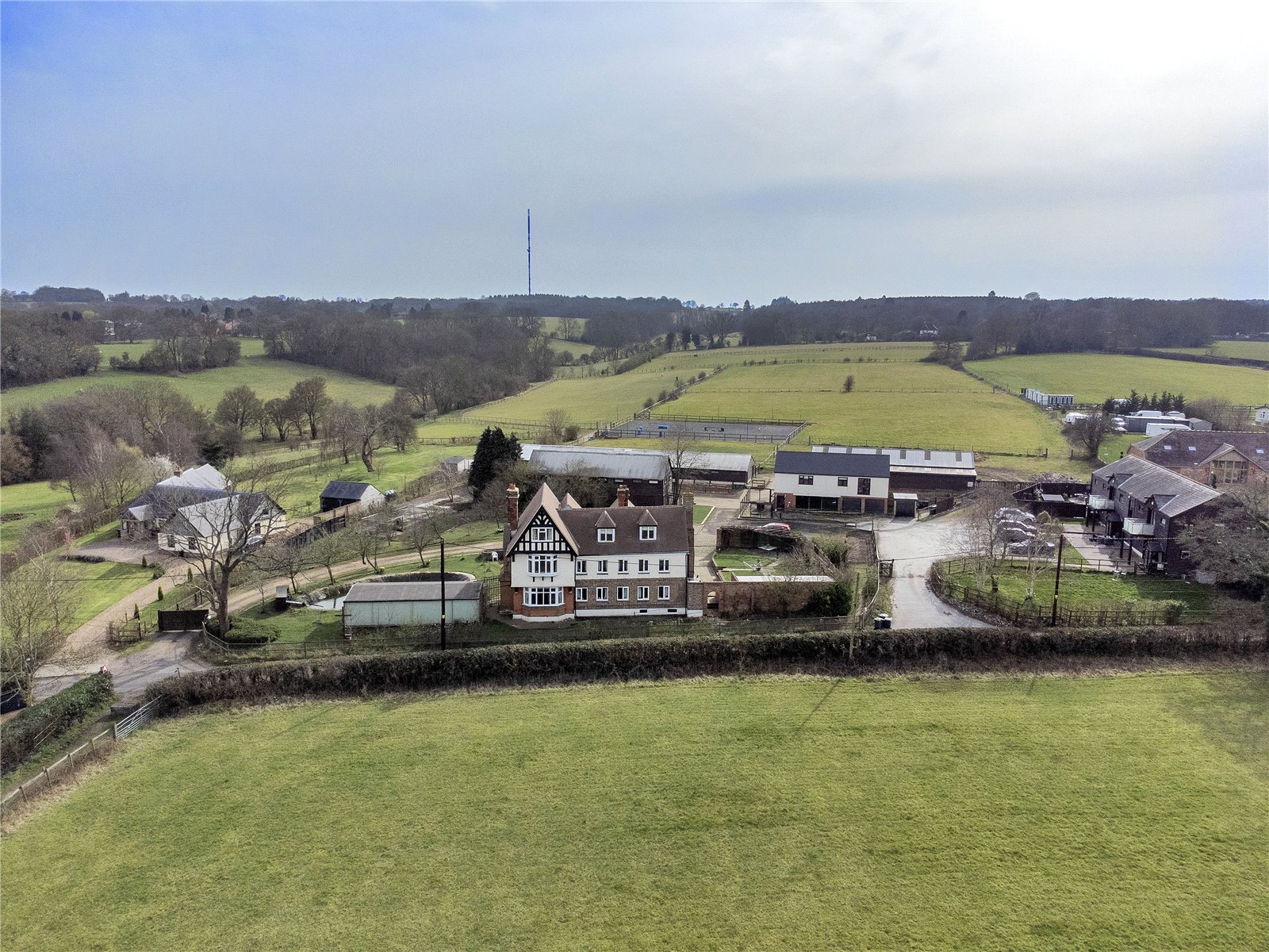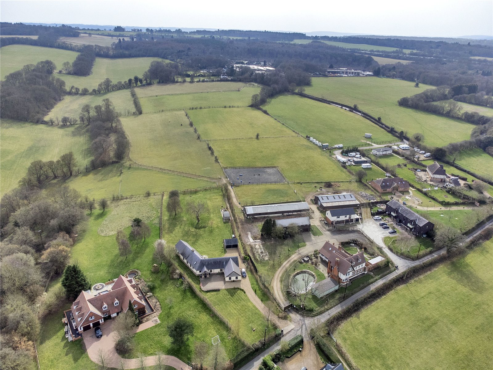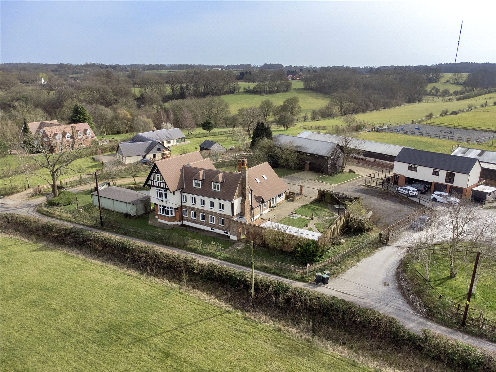 Parsonage Farm in its idyllic setting is situated in the picturesque village of Stansted has many elements to its 12 acre plot. Firstly, the main farmhouse that we understand was first built back in the 1700s. Later additions were added and changes over the years created what is now a substantial three storey six bedroom, six bathroom detached period property of some distinction. It boasts over 3,200 sq ft of living space in this main dwelling alone.