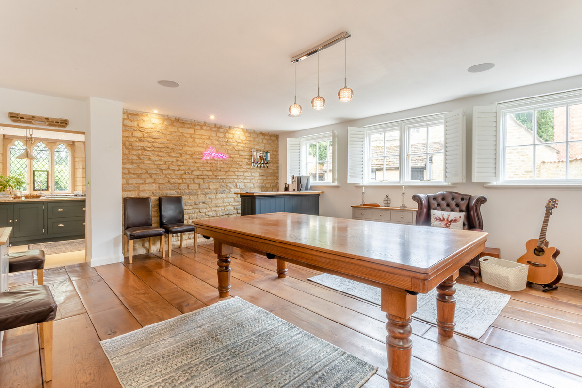 The Old School truly is a stunning family home positioned in the centre of an enchanting village. This charming Victorian grade II listed property is constructed in yellow stone with local Collyweston stone tiled roof. This was once the village school for children on the Boughton Estate, now converted into an immaculate home that is filled with stunning original features, high vaulted ceilings, spacious rooms including a magnificent double height reception room with gallery which was originally the school assembly hall and a spectacular kitchen/dining room.