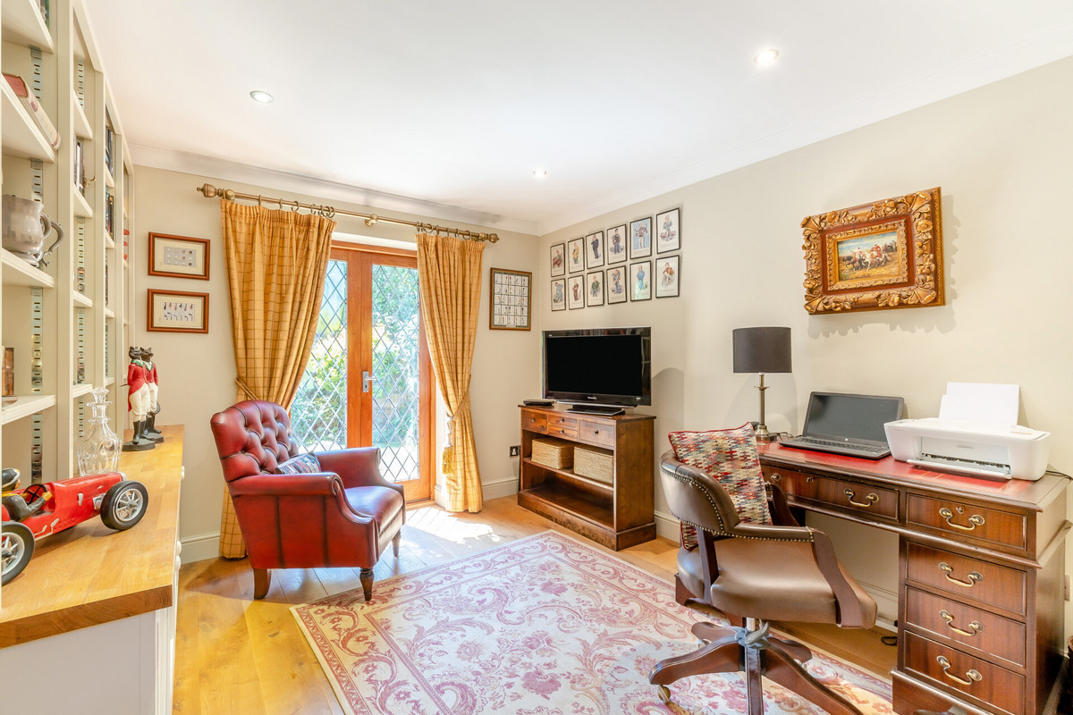 On entering you are greeted by a bright central hallway with an oak floor and oak staircase to the upper floor. On the right of the hall is a beautifully proportioned reception room with windows to the side and front and also French doors opening to the garden flooding the room with natural light, there is an oak floor and an impressive and large period style fireplace with a wood burner. To the rear of the hall is a study/dining room with French doors opening to the rear garden, an oak floor and bespoke fitted bookcases and cupboards.
