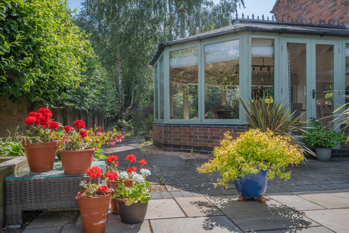 Outside the sunny gardens with an east west aspect are a sheer delight with the rear garden laid to lawn with well stocked flower beds and shrubberies, mature trees and hedging, to the rear is a paved sun terrace spanning the rear of the house and screened by pleached tree hedging , this private area is a real sun trap and ideal for outside dining. To the front the walled garden is bordered by mature hedging and trees, and mature shrubberies and lawn, a brick paved sweeping driveway leads to a parking area and access to the integral garage. The gardens wraparound the whole of the house with lawns, paved patios and flower beds. To the front electric gates open onto a gravelled driveway with automatic courtesy lights and a parking area for three to four cars with an electric car charging point. There is a also a double garage and a separate workroom/kitchen which has current planning to convert into an annex if required.