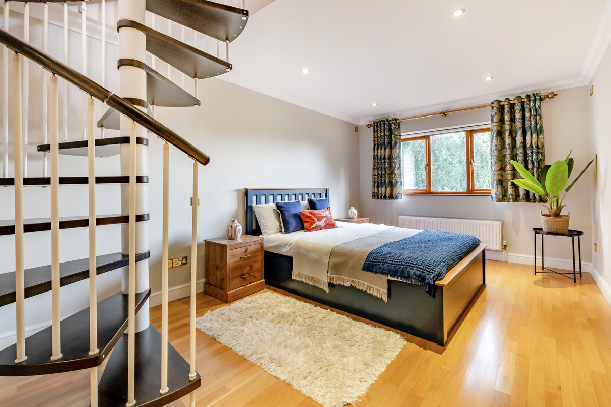 On the upper floor and accessed from the main staircase is a wide central landing, there are three double bedrooms on this floor and all of them are proper double bedrooms. The main bedroom suite is a stunning room and is split level, its a lovely bright room with a spiral staircase leading up to a large dressing room with an extensive range of fitted wardrobes and cupboards, there is also access into a large storage room. the bedroom has an oak floor and window overlooking the rear garden plus a large luxurious en suite bathroom with a roll top bath and a separate shower. The second double bedroom is another superb, spacious room with windows to the front, rear and side, this room was originally two bedrooms so is exceptionally spacious and has a range of bespoke fitted wardrobes. There is a further double bedroom overlooking the rear garden and a luxurious family bathroom.
