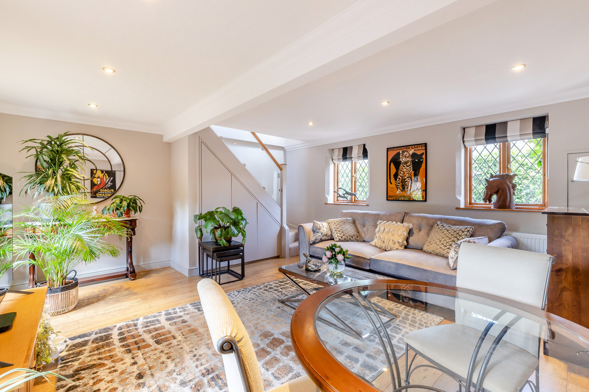 Accessed from the utility room is another large reception room which has a bright contemporary feel. This superb room has windows to the front and rear so its lovely and bright, an oak floor and a glass and oak staircase with fitted cupboards leading to the upper floor. On the upper floor is a superb double bedroom with fitted cupboards and shelving plus a luxurious en suite shower room.