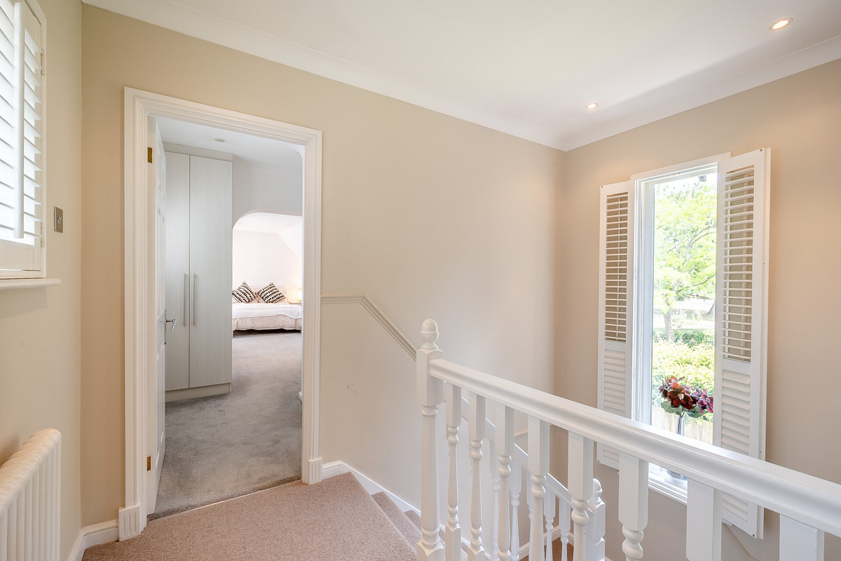 On the upper floor is a wide central landing, there are four double bedrooms all of them are proper double bedrooms. The main bedroom suite is a lovely bright room with a dressing area with an extensive range of fitted wardrobes and cupboards, to the rear is a pair of French doors with a Juliet balcony overlooking the garden and golf course, there is also a large luxurious en suite shower room. There are three further double bedrooms, one with another en suite shower room and wardrobes plus two double bedrooms overlooking the rear garden and a luxurious family bathroom.