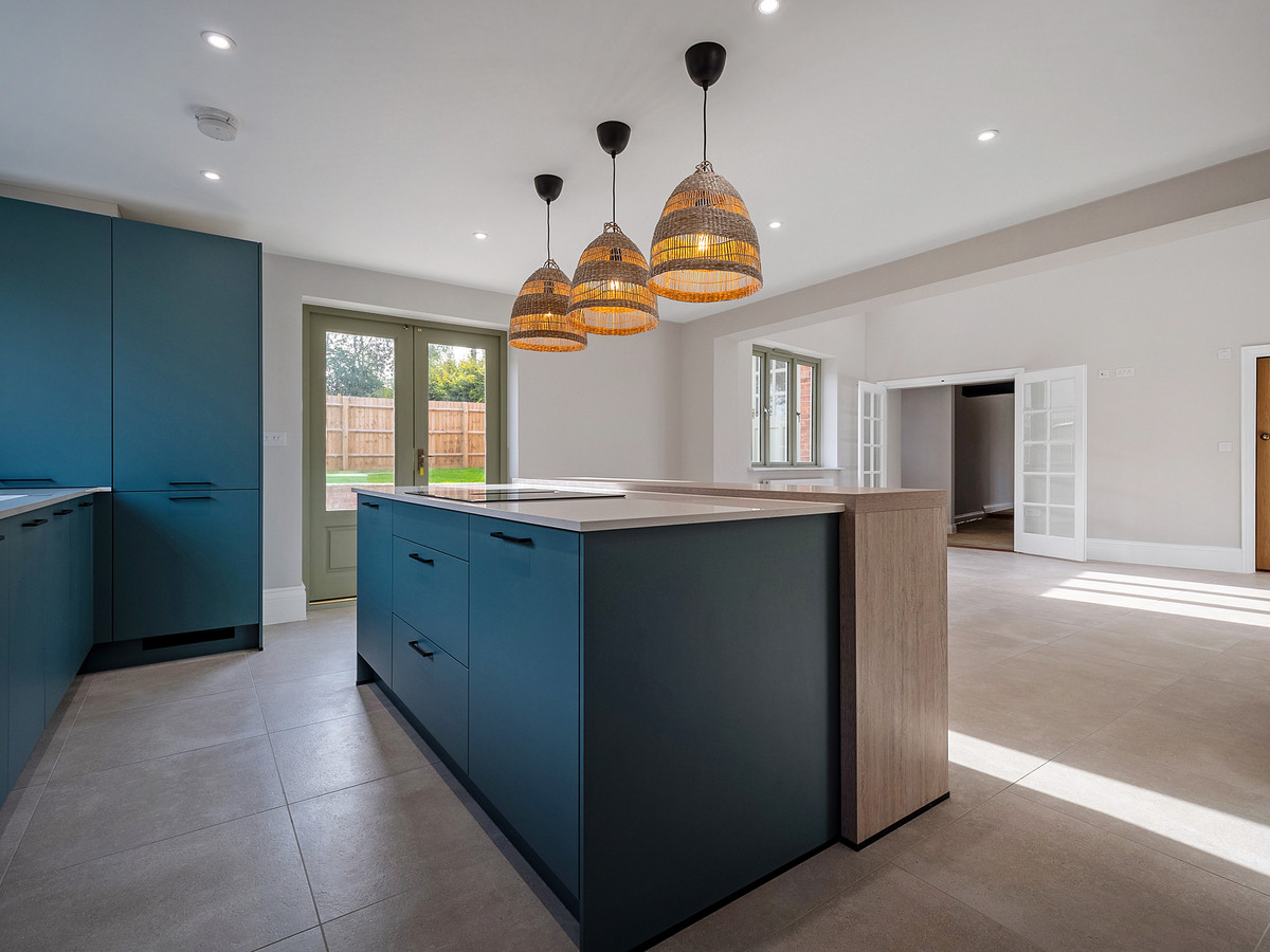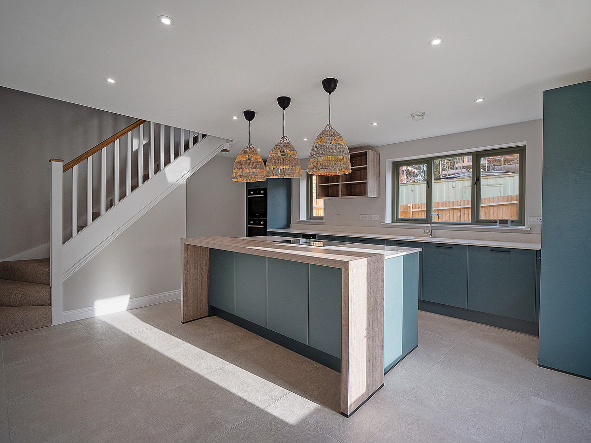 On the right of the hallway is the heart of this stunning home an exceptionally bright and spacious family kitchen/breakfast room. This superb room has a bespoke fitted kitchen with a central island and integrated appliances plus a large dining area, there are doors opening onto a sun terrace and the rear garden. Stairs from the kitchen lead to the main bedroom with en-suite shower room.