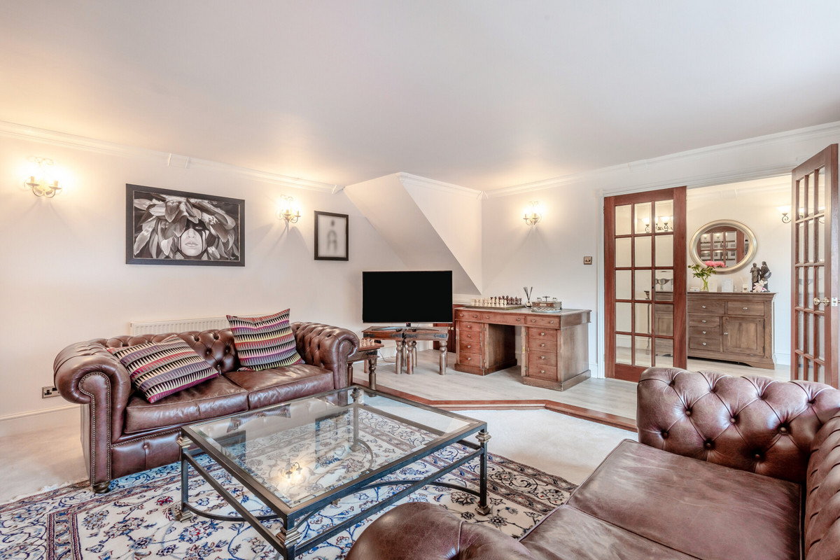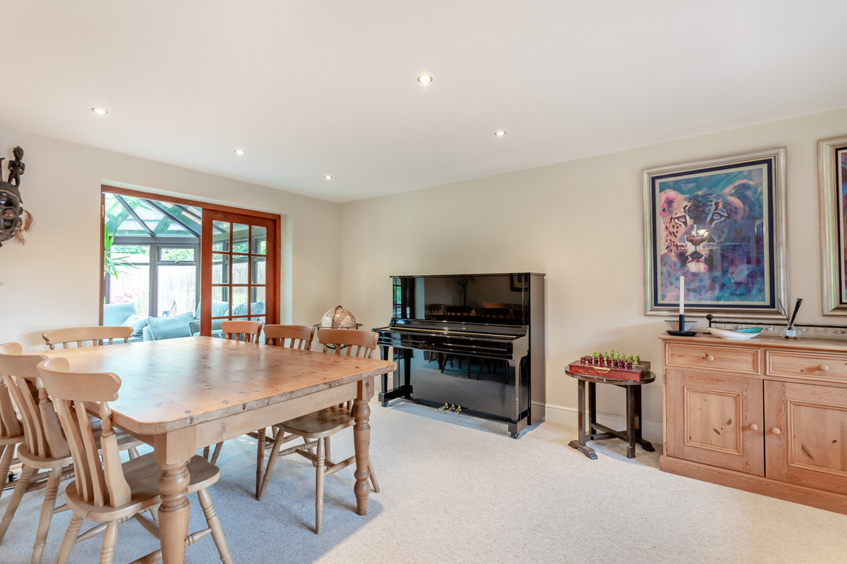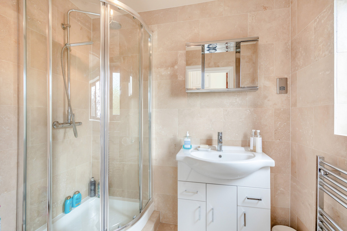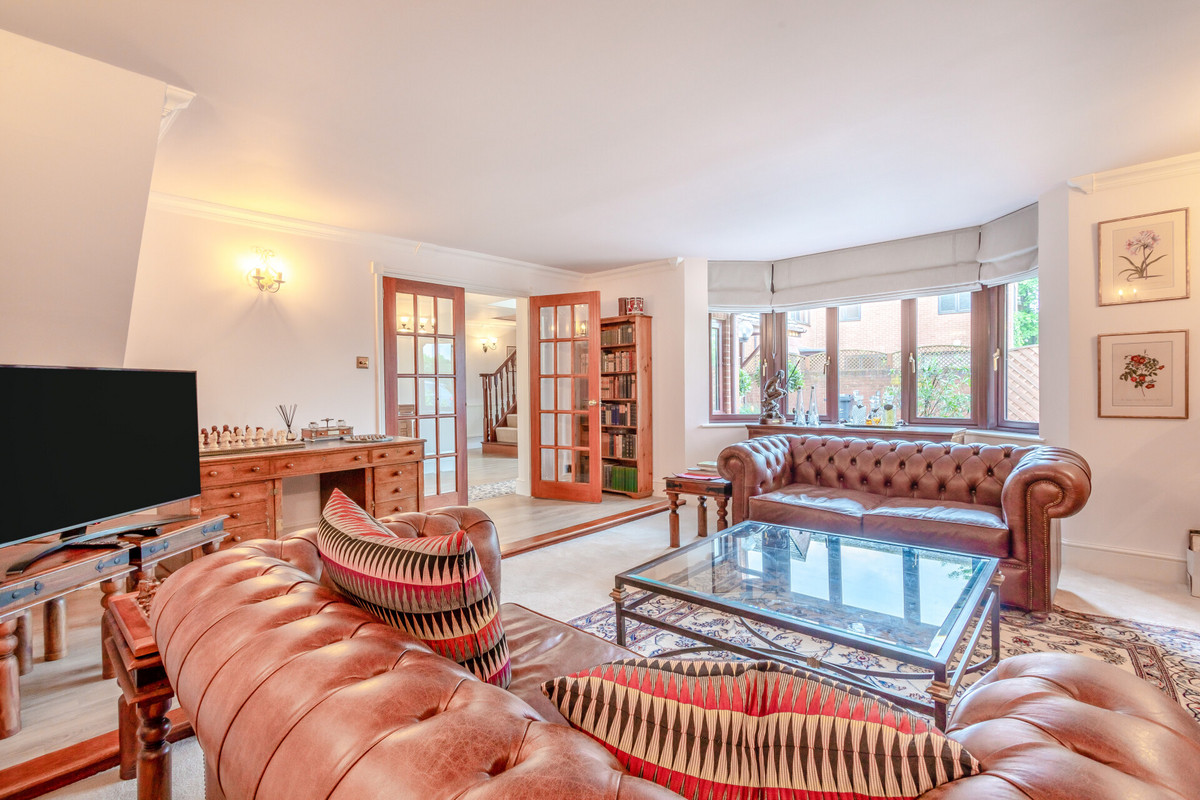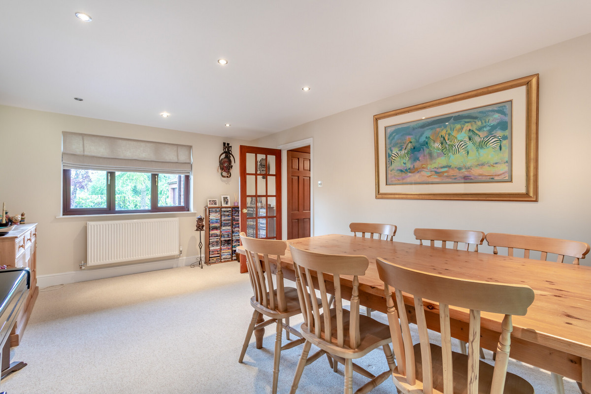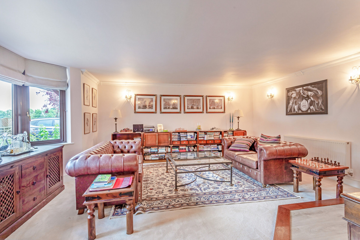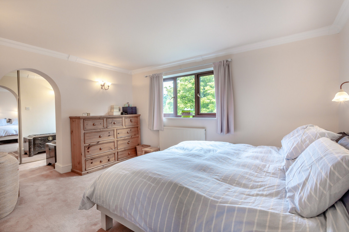 On the first floor leading from the main staircase there are three double bedrooms, a study and a luxurious family bathroom. The main bedroom suite overlooks the rear garden and is a great size with a separate dressing room and an en suite shower room. On the other first floor wing accessed by a separate staircase are a further two double bedrooms both with fitted wardrobes and en-suite shower rooms and a fully fitted home office.