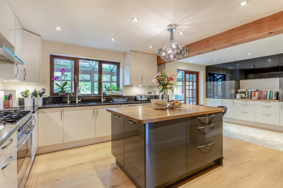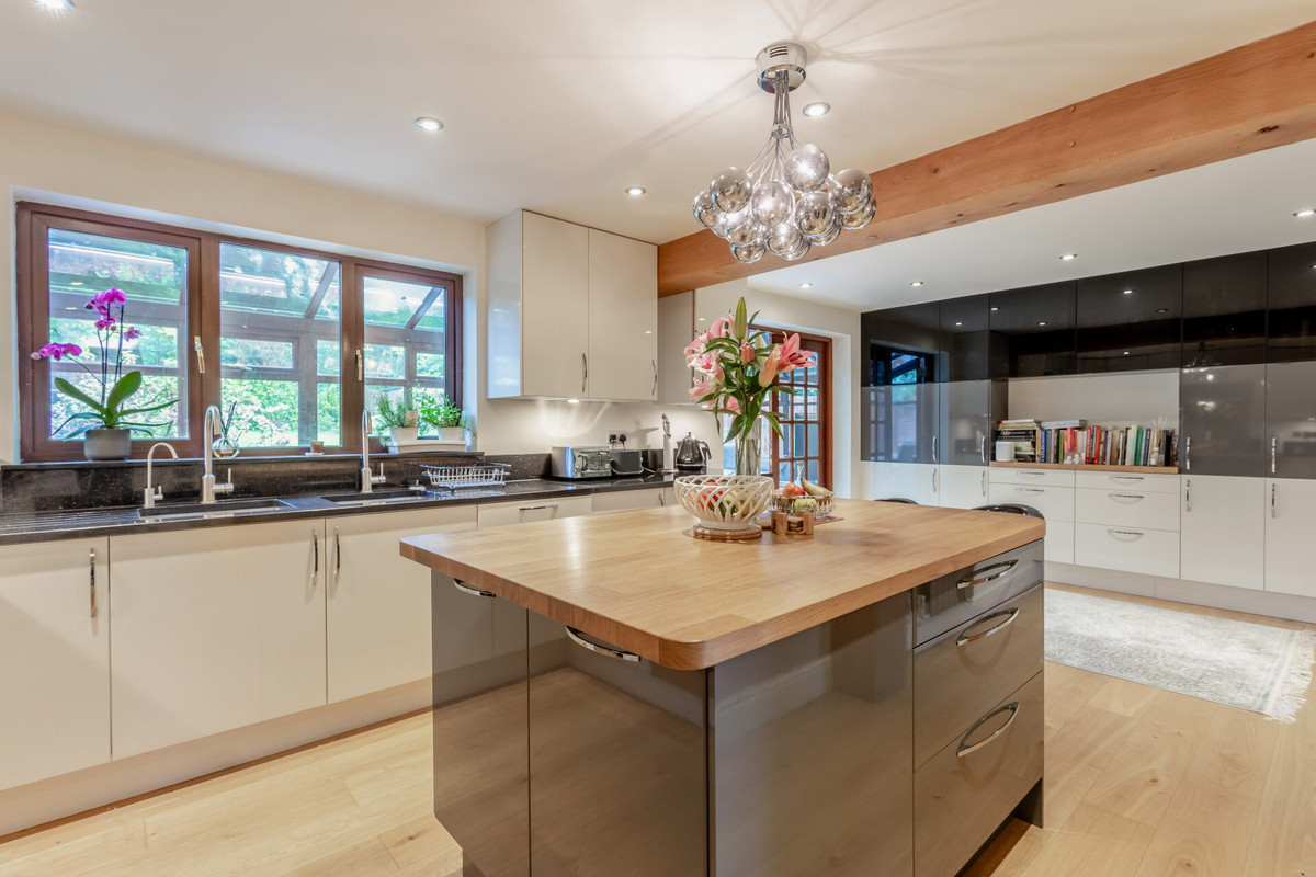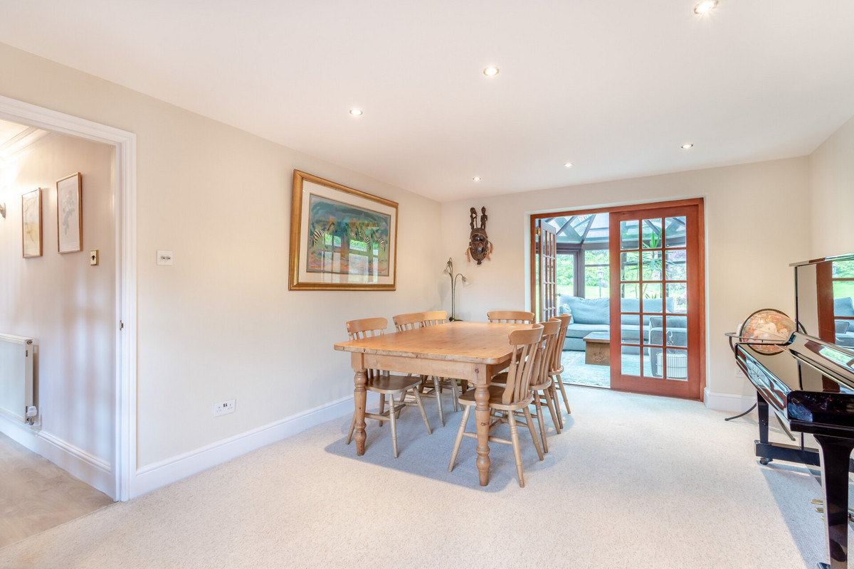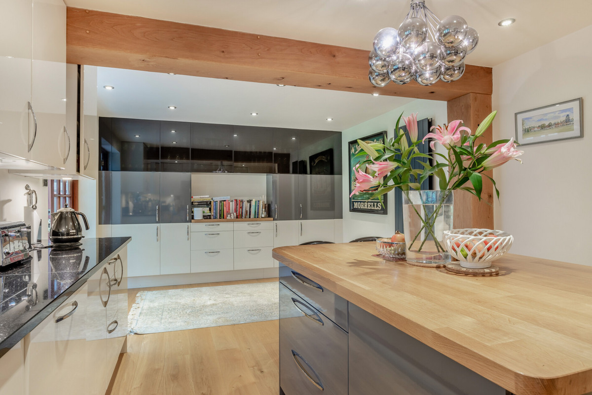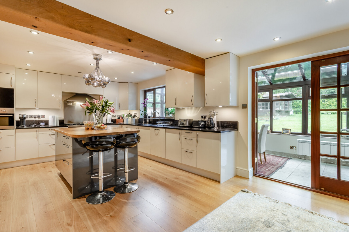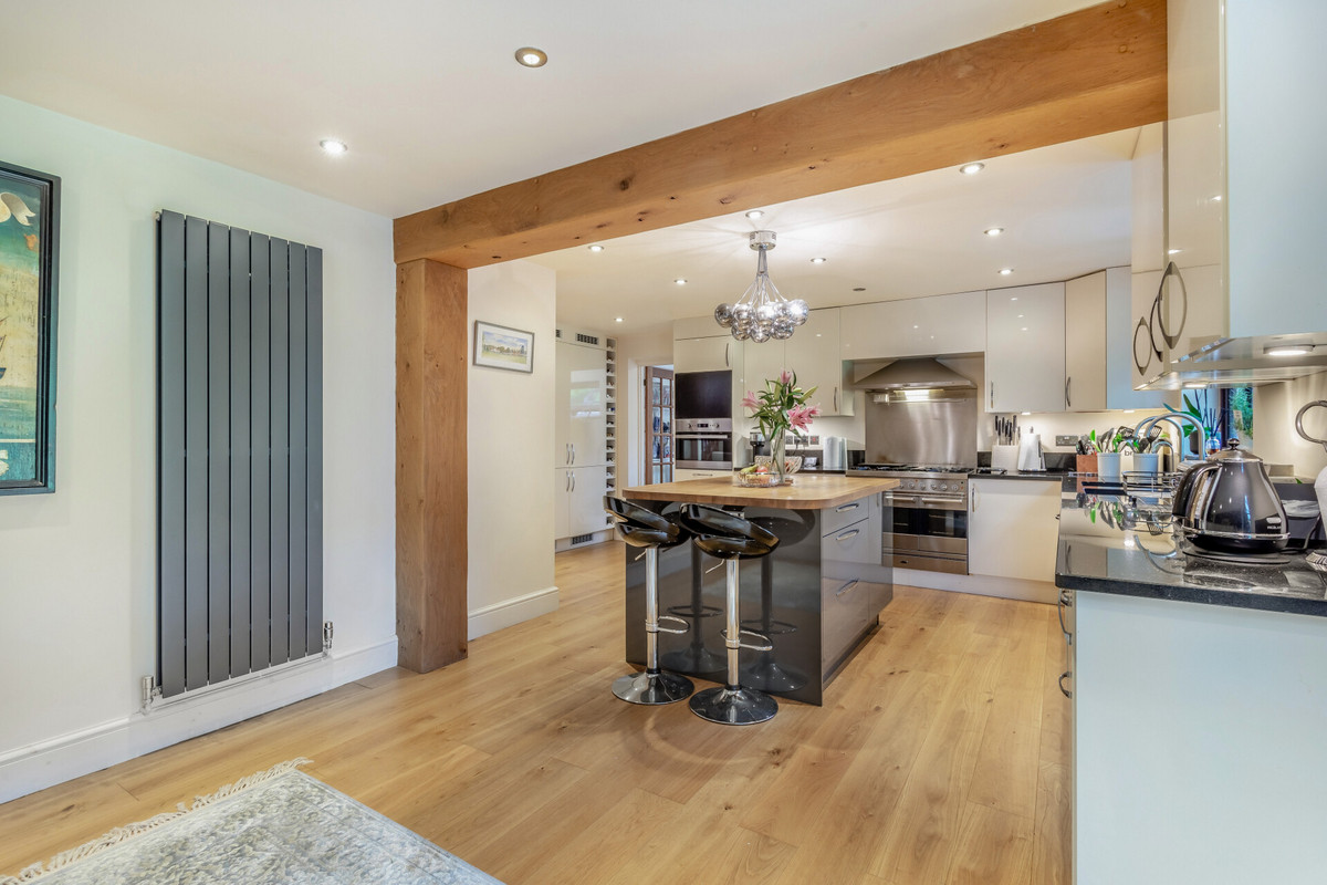 On the first floor leading from the main staircase there are three double bedrooms, a study and a luxurious family bathroom. The main bedroom suite overlooks the rear garden and is a great size with a separate dressing room and an en suite shower room. On the other first floor wing accessed by a separate staircase are a further two double bedrooms both with fitted wardrobes and en-suite shower rooms and a fully fitted home office.