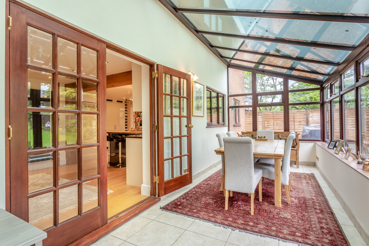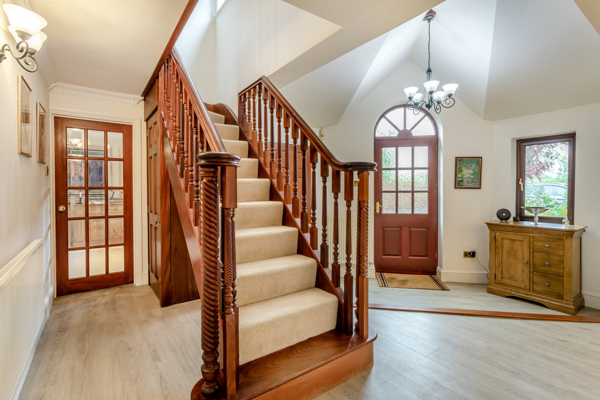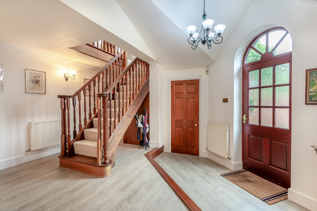 On entering you are greeted by a large bright hallway with an impressive central staircase which leads to one part of the upper floor plus a second staircase that leads to the further upper floor wing, there is also a guest cloakroom. On the left is the main reception room which is a large bright room and on the right of the hallway is the dining room which opens into the conservatory. The heart of this superb home has to be the kitchen/dining room which is fitted with an extensive range of contemporary style units with integrated appliances and a central island plus a large utilty room, the kitchen/dining also leads through to the conservatory which is used all year round and has both a dining and seating area.