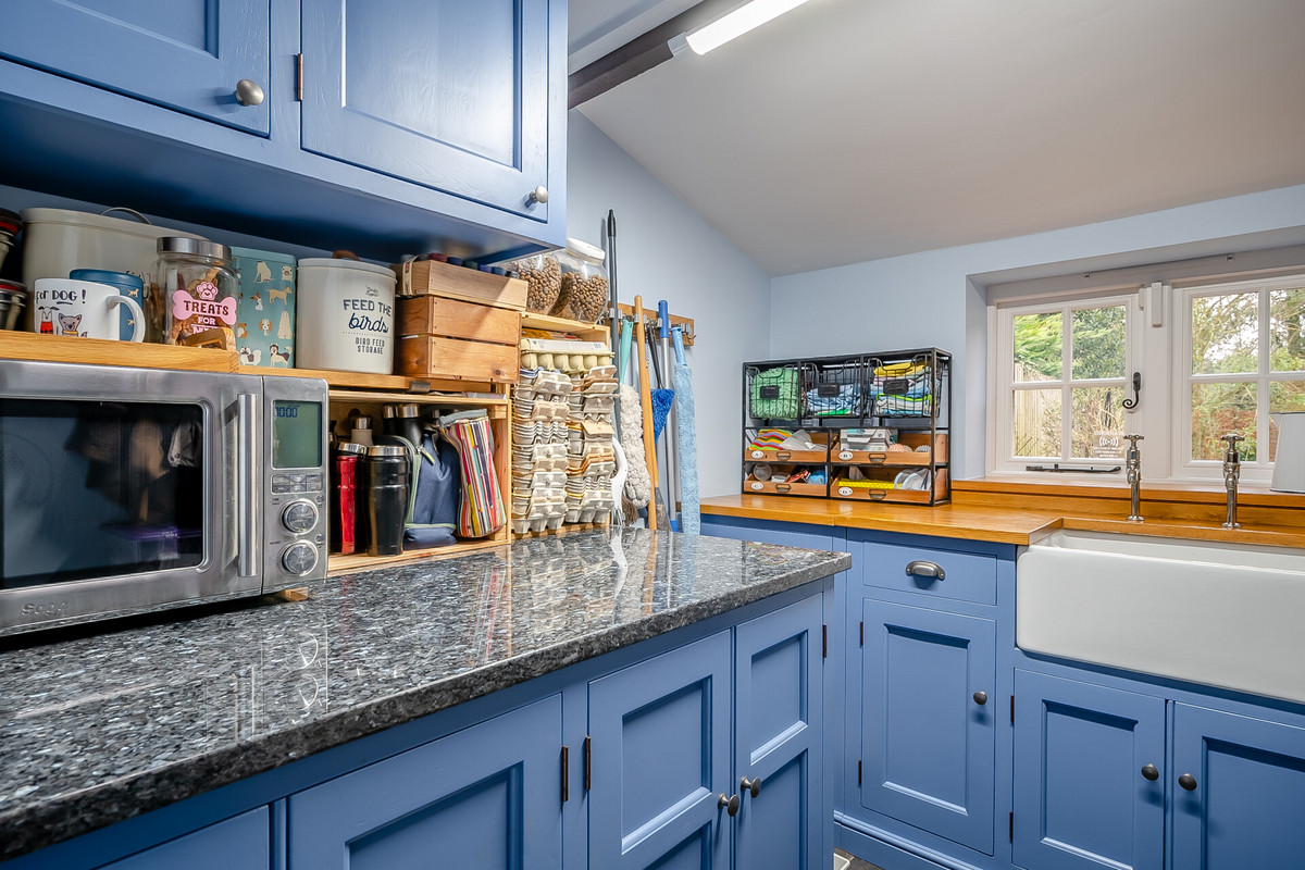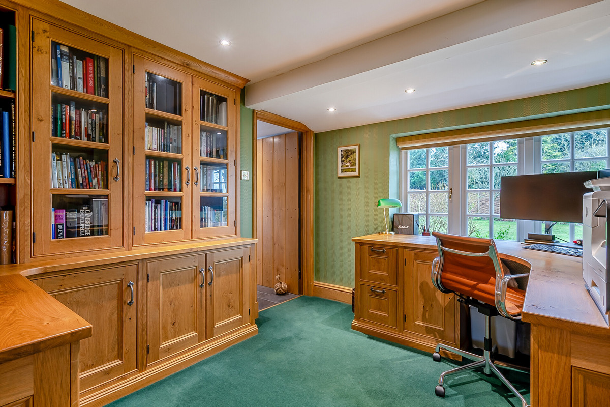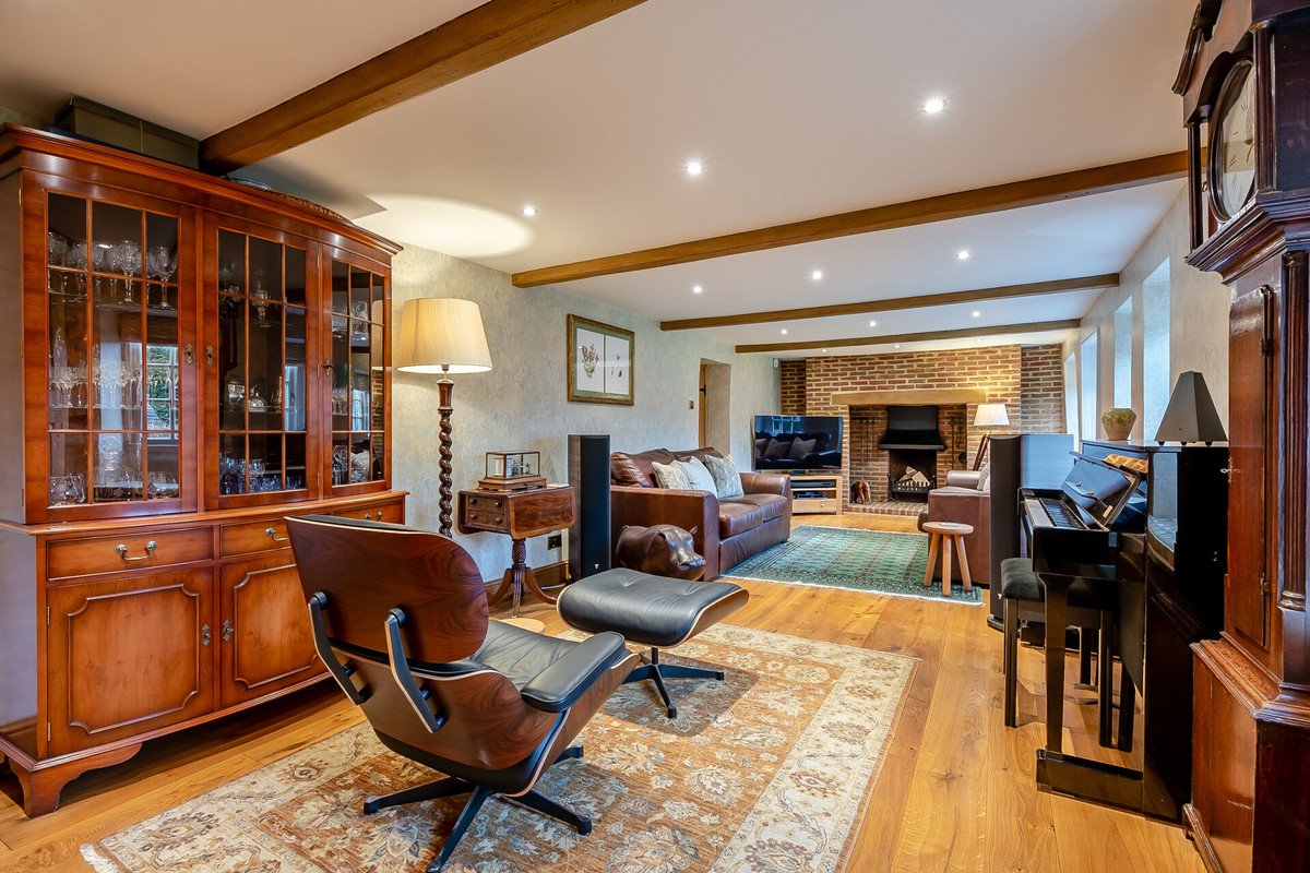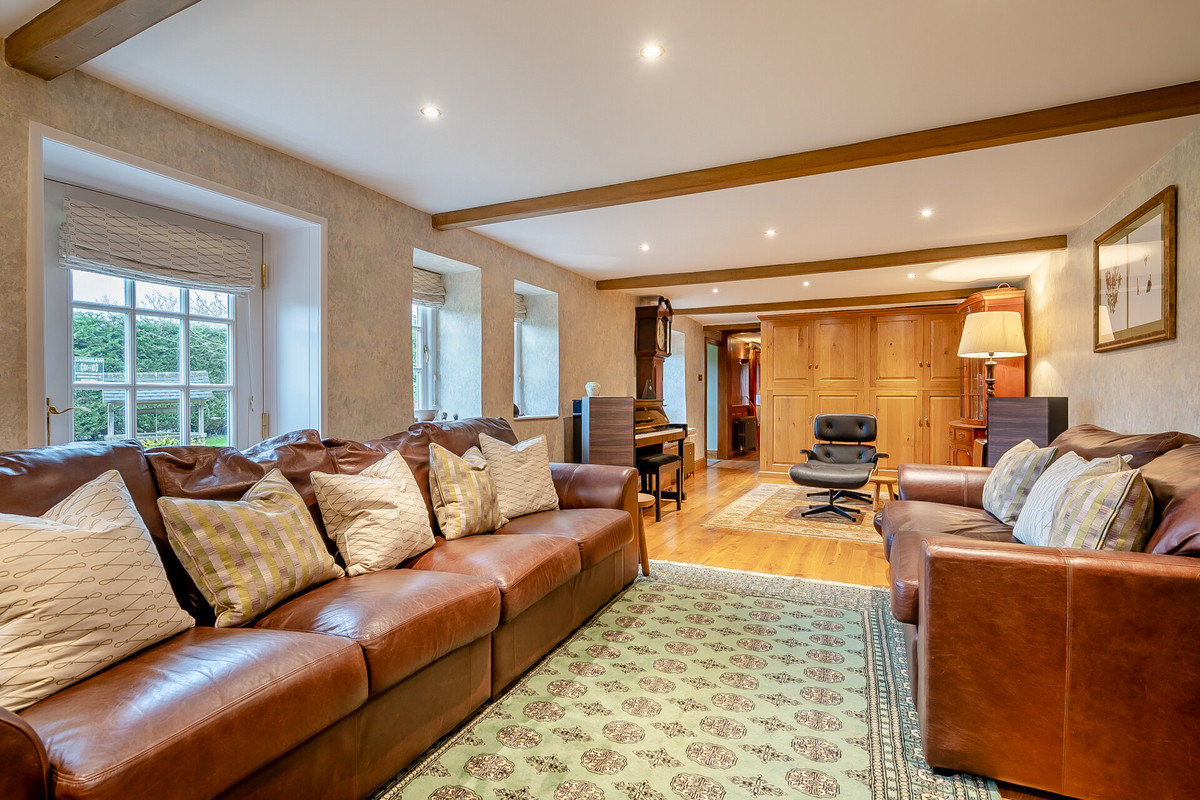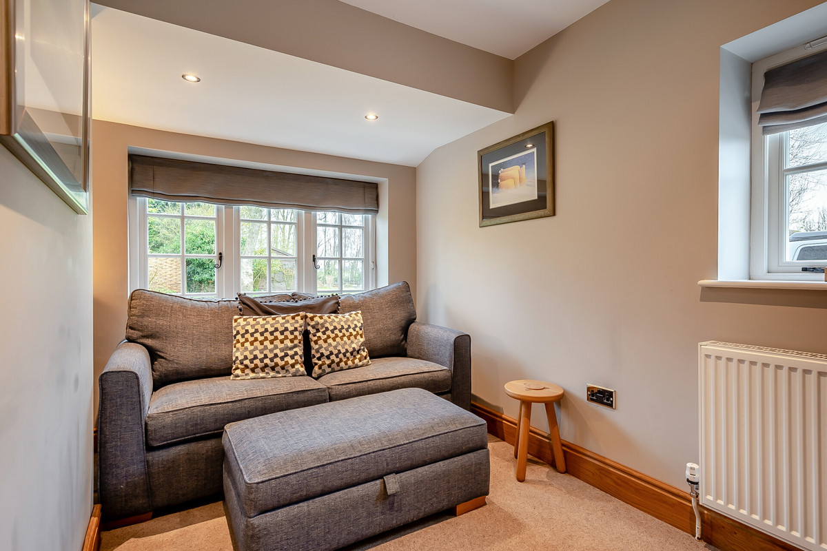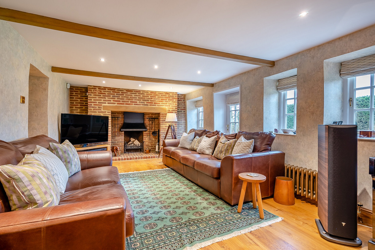 On entering you are greeted by a lobby area with ample room for coats and shoes. On the right is the first of four reception rooms, it's a superb sitting room ideal for entertaining with exposed beams and an impressive brick fireplace and a wood floor, this room is lovely and bright with four windows to the front overlooking the garden as well as a door opening to the garden. To the rear of the sitting room is a delightful study with bespoke fitted furniture and views to the rear over the garden and a separate snug/television room. The last of the entertaining rooms is a wonderful oak panelled dining room, it's a great size room ideal for family dining with a fireplace with wood burner. Lastly, we have the kitchen/breakfast room which has a vaulted ceiling with velux windows and is fitted with a range of quality, country style, bespoke units painted a rich blue granite work surfaces, a gas and electric Aga, pantry unit, central island with an integrated dishwasher, there is a large breakfast area with bi-folding doors to the terrace and garden and a separate fully fitted utility room. Adjacent to the kitchen is a hallway with access to a ground floor bathroom.