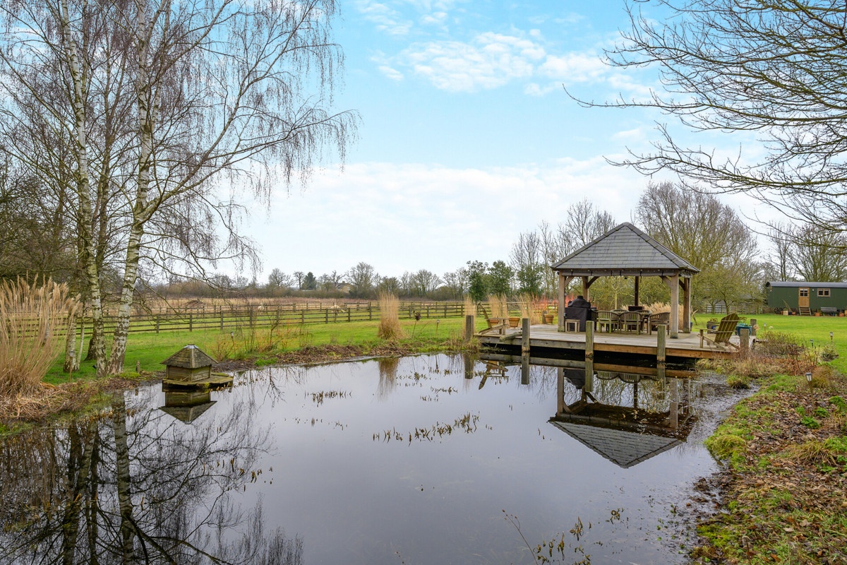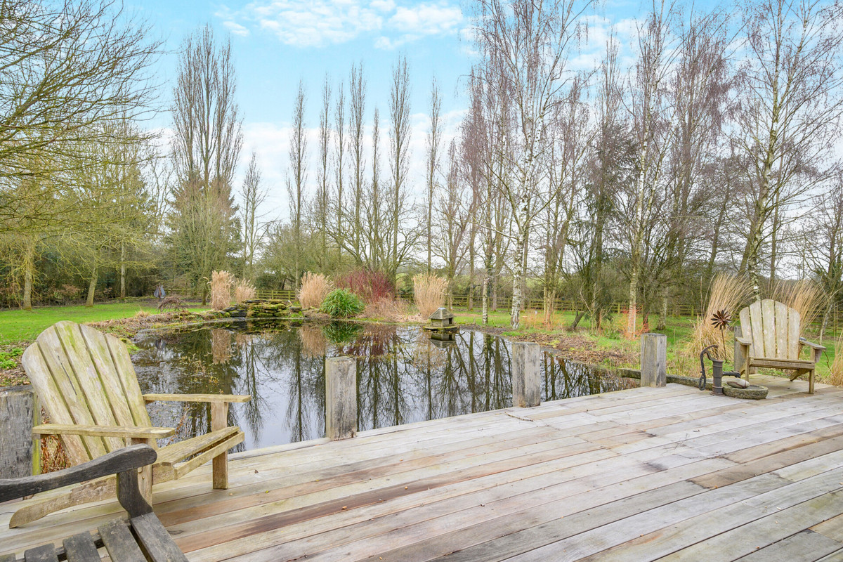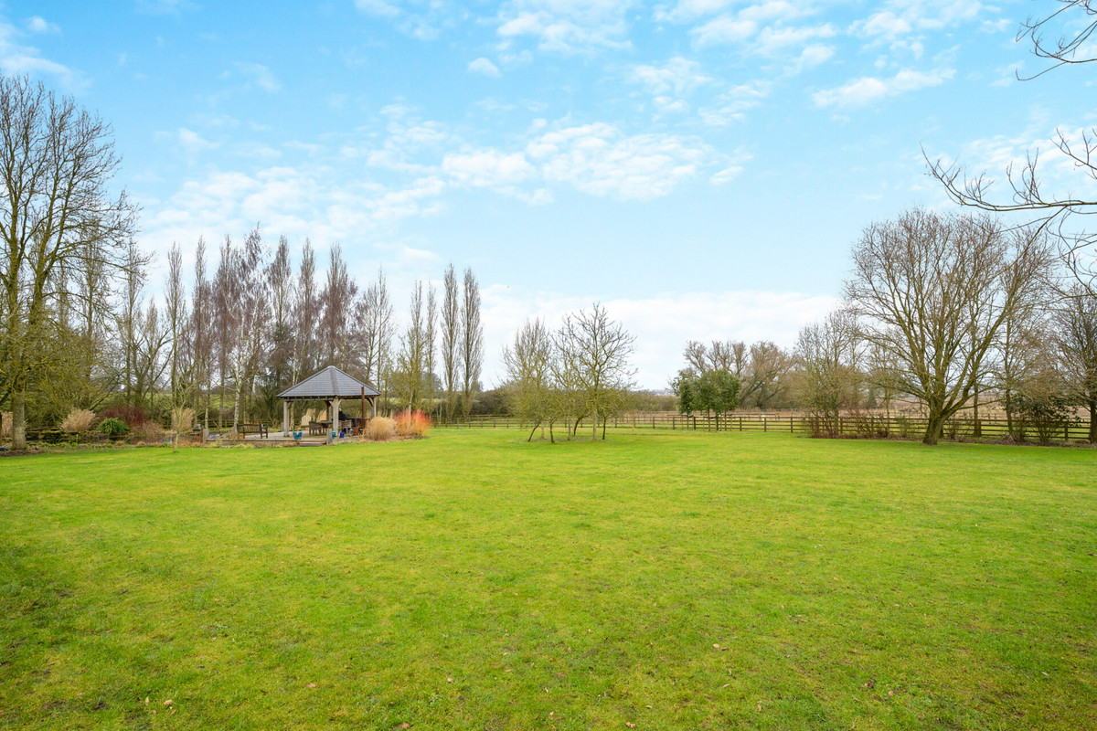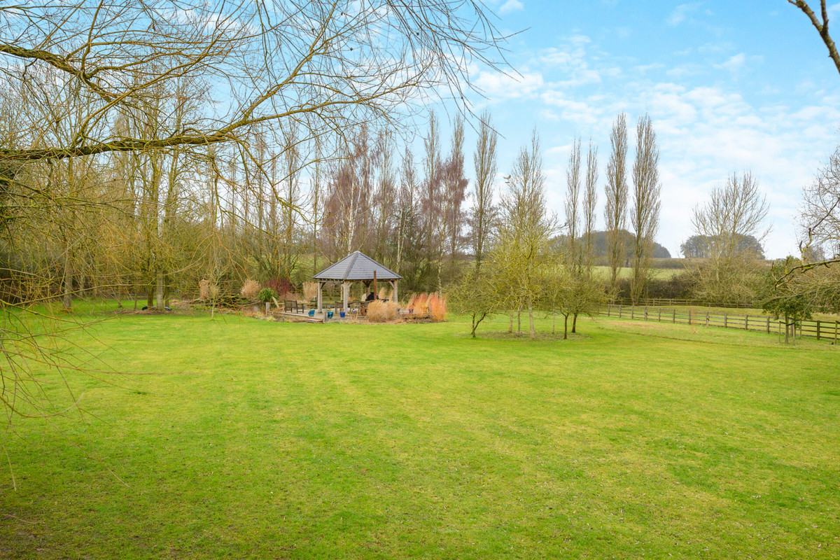 This stunning home sits in gardens of approximately 2.47 acres which includes a paddock and gardens overlooking adjoining fields, there is a decked terrace with a covered dining area ideal for outside entertaining that sits on the edge of a large ornamental pond. The paddock is approximately 0.71 acre and is fully fenced with an animal shelter. There is a detached triple garage with workshop area plus a self contained guest studio annex with en-suite shower room above. The garden also has a gym with separate sauna, a large garden store and also a 'Red Sky ' Shepherds hut which is available by separate negotiation.