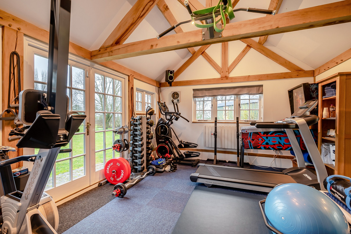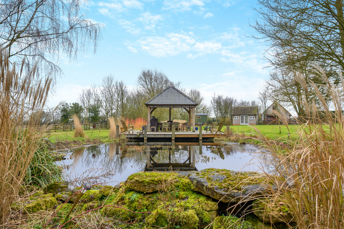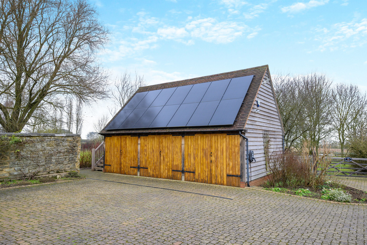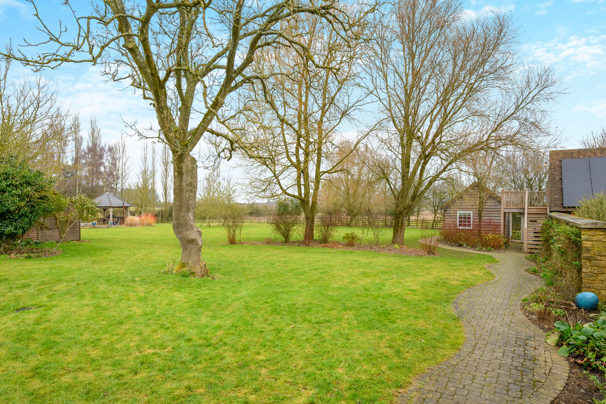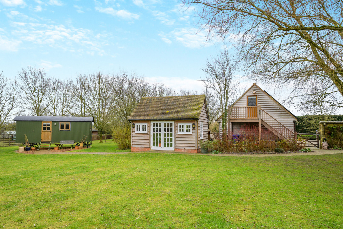 This stunning home sits in gardens of approximately 2.47 acres which includes a paddock and gardens overlooking adjoining fields, there is a decked terrace with a covered dining area ideal for outside entertaining that sits on the edge of a large ornamental pond. The paddock is approximately 0.71 acre and is fully fenced with an animal shelter. There is a detached triple garage with workshop area plus a self contained guest studio annex with en-suite shower room above. The garden also has a gym with separate sauna, a large garden store and also a 'Red Sky ' Shepherds hut which is available by separate negotiation.