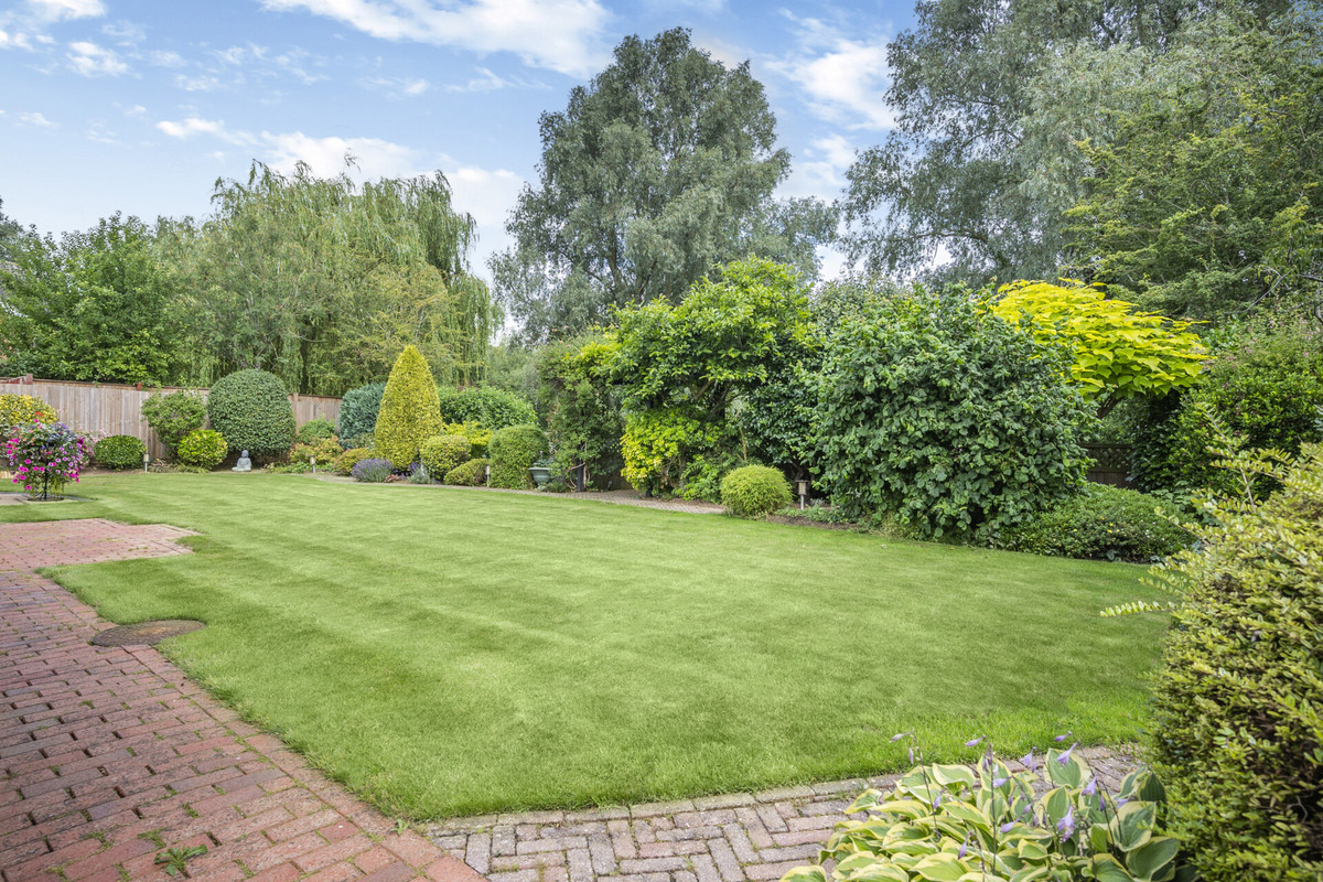 Outside the gardens are a sheer delight and are landscaped with a large lawn, paved sun terrace, mature hedging, trees and flower borders, a gate leads down to the brook and golf course. There is also an outdoor security system with 8 cameras, these take recordings and can be viewed on mobile phones.