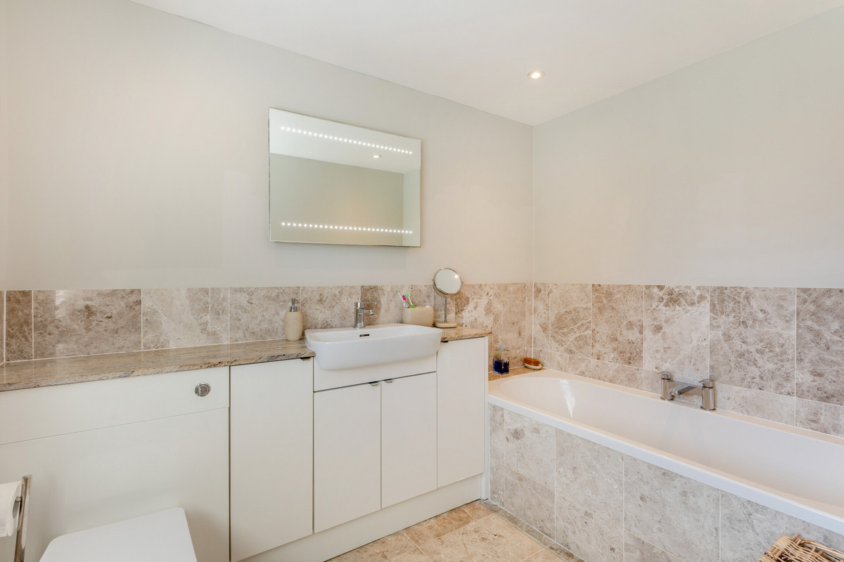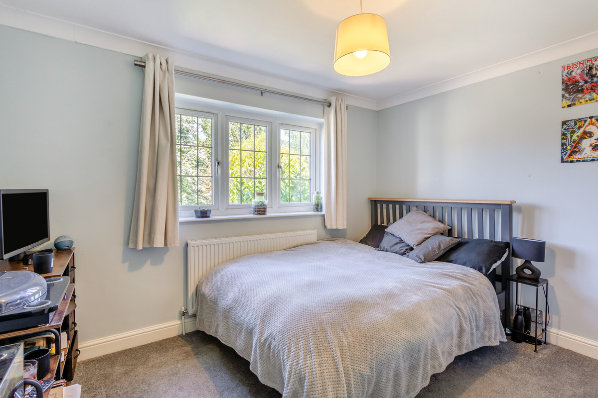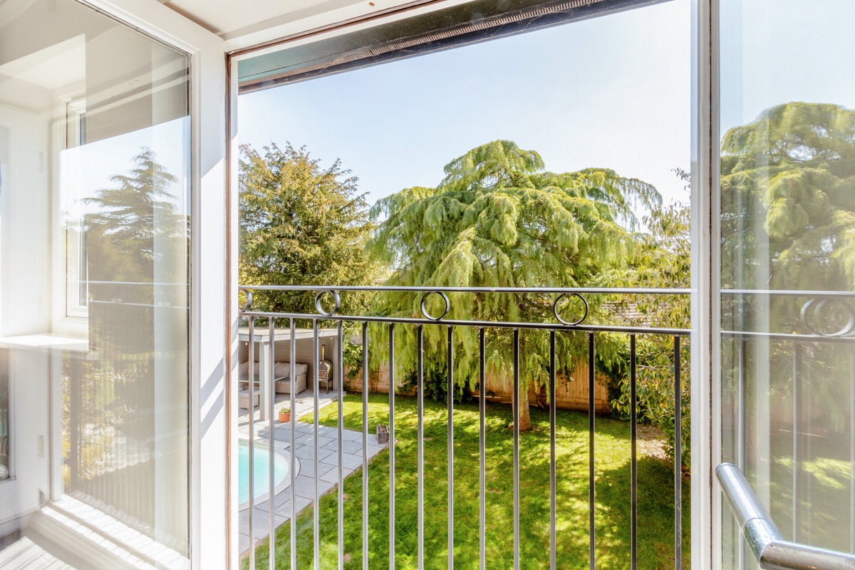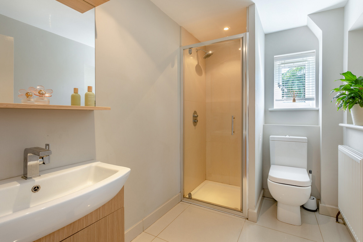 Upstairs, the galleried landing area leads to four generously proportioned double bedrooms plus a fifth bedroom/home office. The primary suite is a standout, offering a large double bedroom with glazed doors and a Juliet balcony overlooking the garden and pool, there is a dedicated dressing room, and a luxurious en-suite shower room. There are a further three double bedrooms and a smaller fifth bedroom with fitted cupboards and currently used as a home office. A stylish family bathroom with shower cubicle serves the remaining bedrooms.