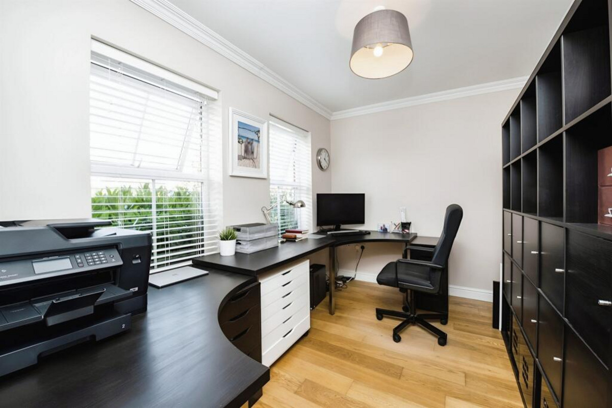On the upper floor is a split level landing, there are five good size bedrooms in total, the main bedroom has a walk-in wardrobe and an en suite shower room, the guest bedroom has another en-suite shower room and fitted wardrobes, three further doube bedrooms with wardrobes plus a very useful study/cot room and a family bathroom.
