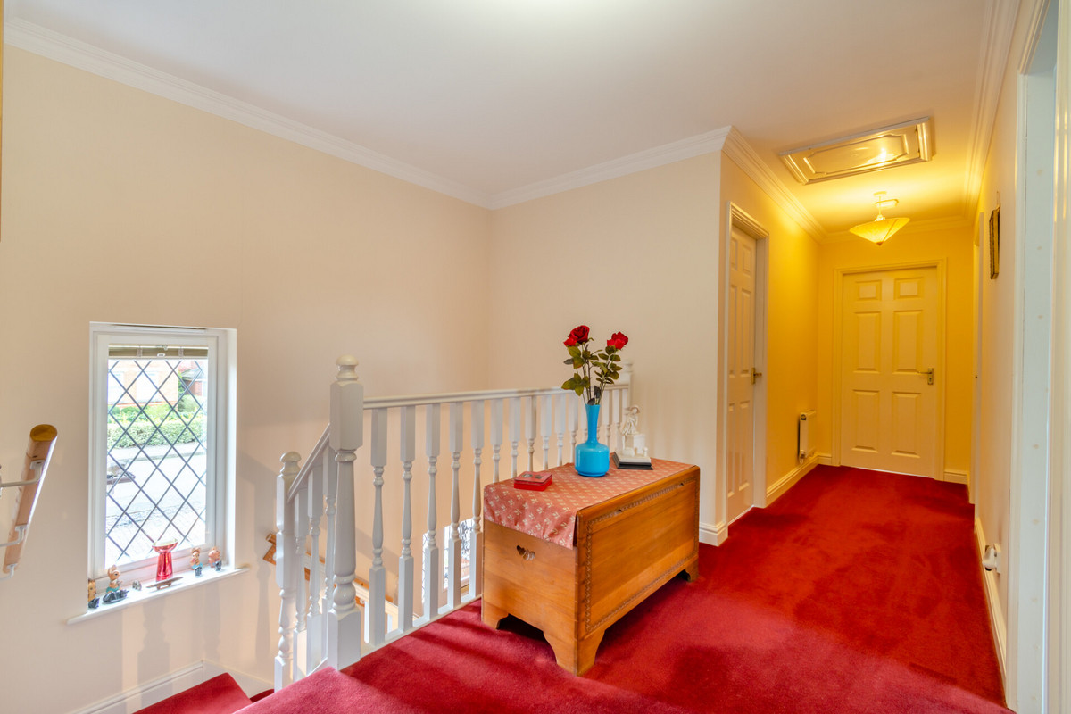 On the upper floor is a wide landing with airing cupboard, there are five good size bedrooms in total, the main bedroom has a dressing room and an en suite bathroom, the guest bedroom has an en-suite shower room and fitted wardrobes, two further double bedrooms both with wardrobes plus a very useful study/single bedroom 5 and a family bathroom.