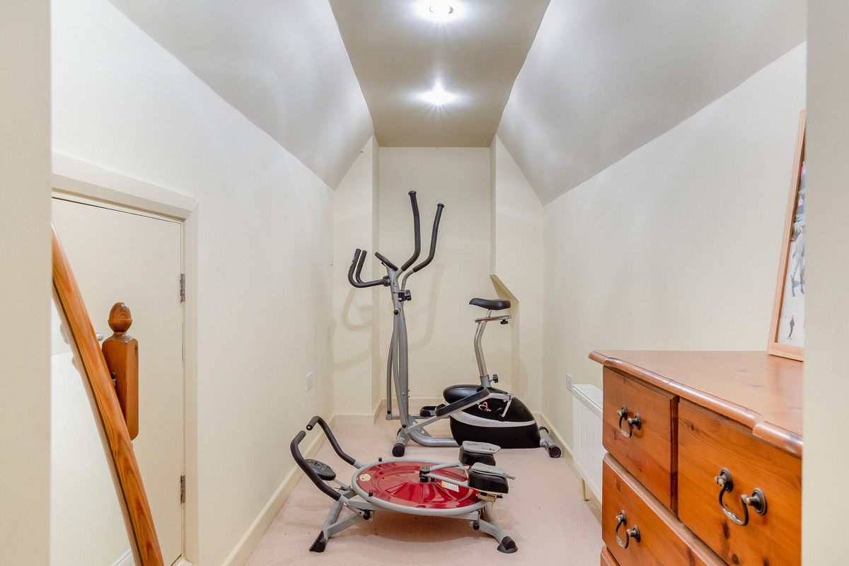 On the first floor there is a long central landing with access to all the bedrooms. There are two bedroom suites. The first suite is at the rear of the house and has a tiled fireplace and windows to the side and rear, there is a fully fitted dressing room and a smart en suite shower room. The main suite is an exception room with a leaded glass bay window to the front with views towards St Matthews Church, there is a fitted dressing room and a luxurious en suite bathroom with shower. There are a further two double bedrooms and a luxurious family bathroom with a fee standing roll top bath and a shower cubicle plus a separate cloakroom. On the upper floor are a further two rooms, one has a fitted cabin bed and the other is currently used as a gym.