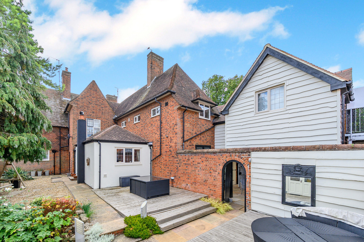 The garden to the front is fenced with secure intercom gated access, it has an abundance of mature shrubs and trees creating privacy. To the side of the house is a a more formal garden with large lawn, patio area with shrubberies and mature trees, there is also a great view of the spire of St Mathews Church. To the rear there is a further fenced garden with two decked patio areas and summer house, this garden is a lovely suntrap, it leads through to a further part covered courtyard area which is at the rear of the kitchen and is a lovely spot for relaxing.