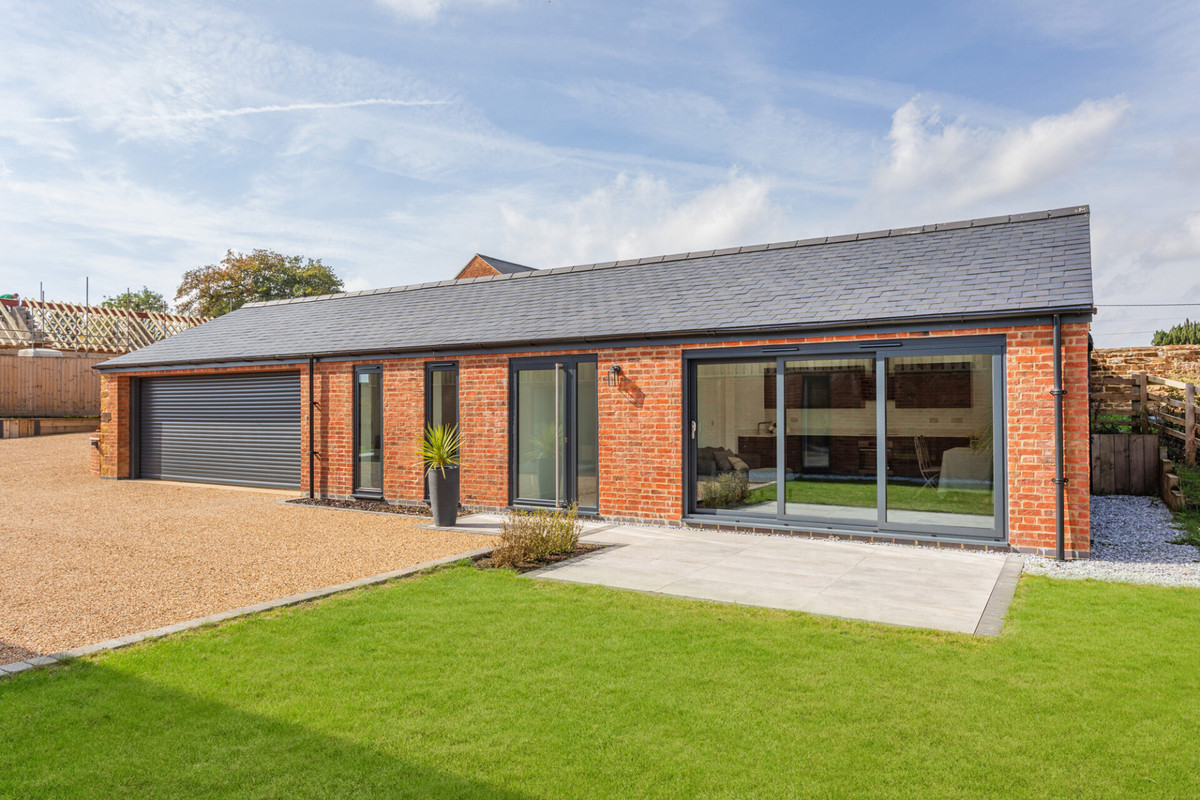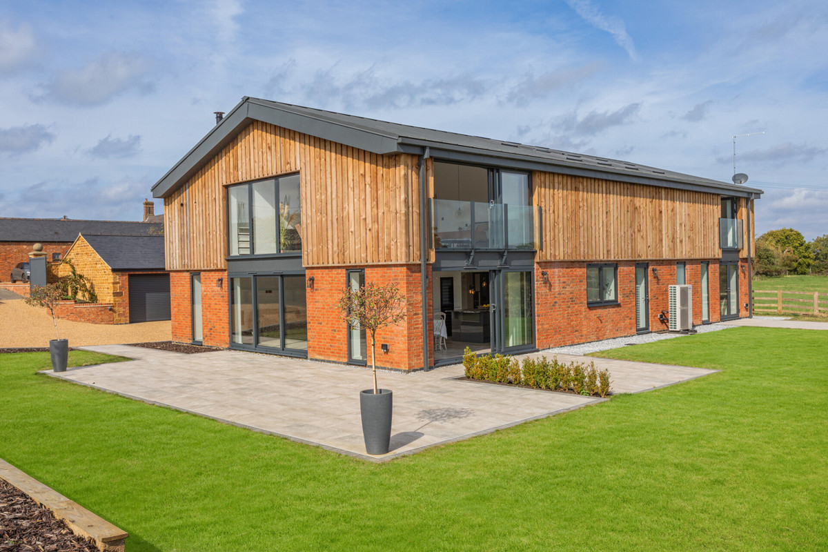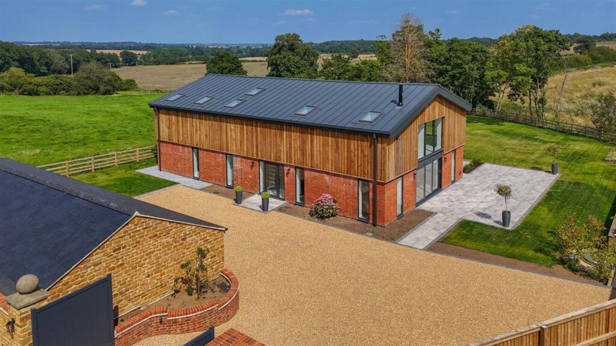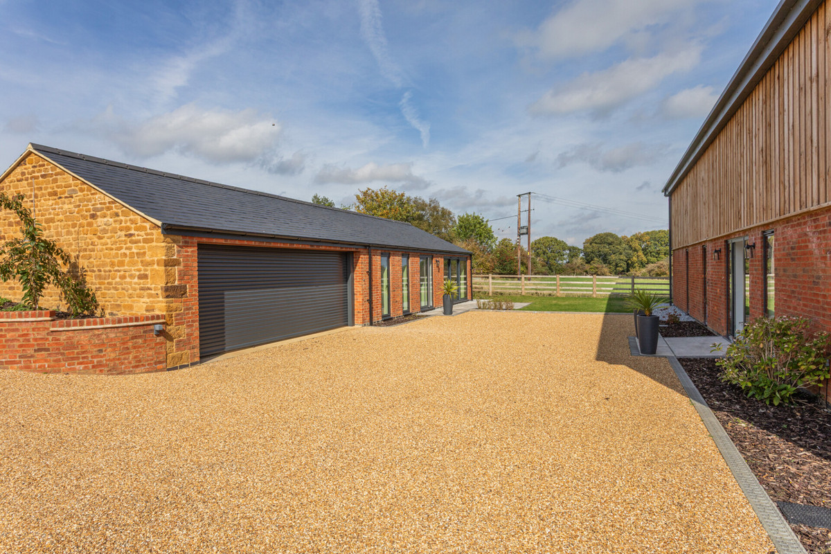 The Grain Barn is an absolutely stunning, luxury, contemporary country home converted from a former Althorp Estate Grain Barn. This spectacular ultra modern masterpiece stands on the outskirts of highly sought after Little Brington with spectacular countryside views over surrounding farmland towards Holdenby and Brixworth. The property is approached through electric gates that lead through to a sweeping gravelled driveway with ample parking for at least five cars plus garaging.